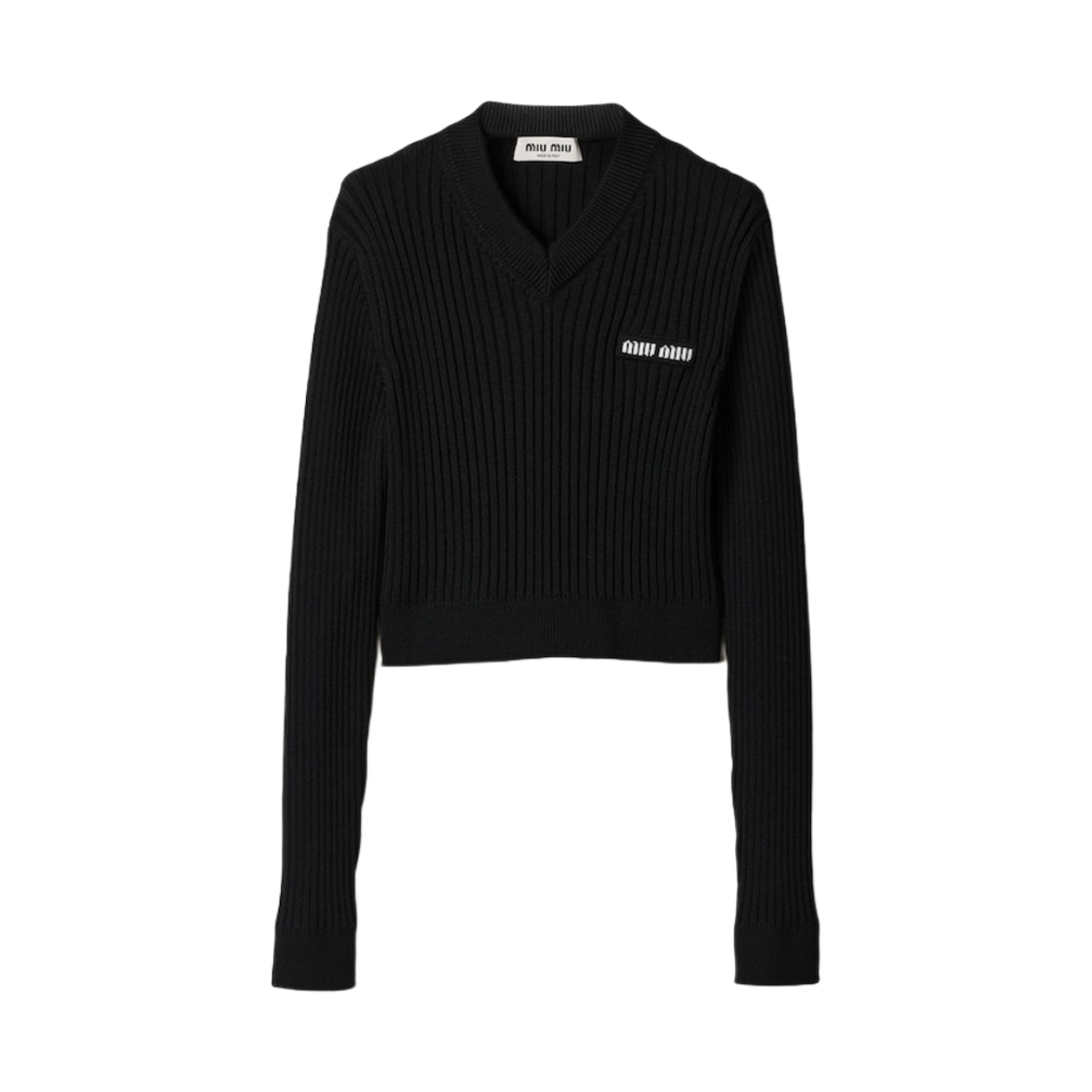 (W) 미우 미우 크롭 울 스웨터 블랙