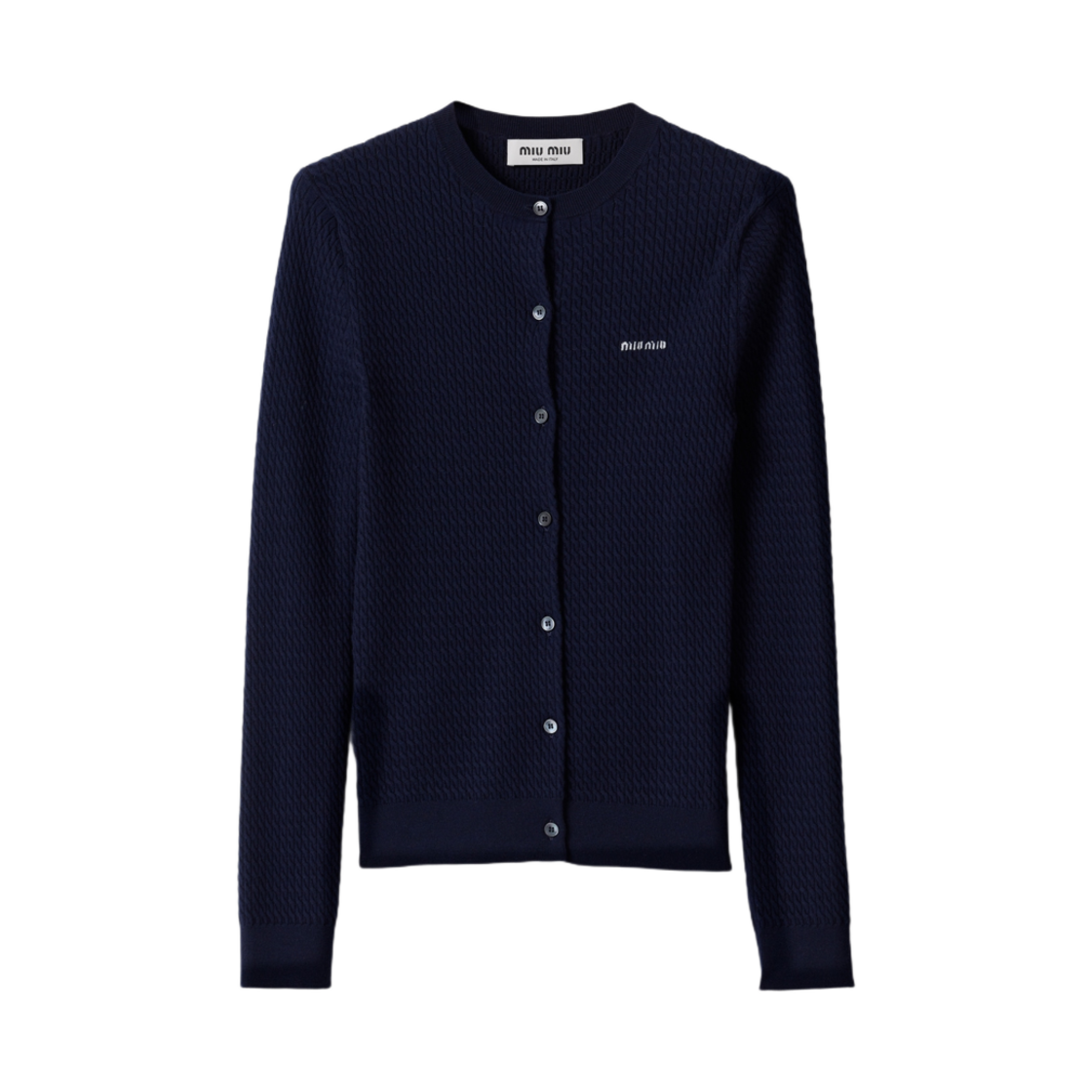 (W) 미우 미우 케이블 니트 캐시미어 실크 가디건 블루