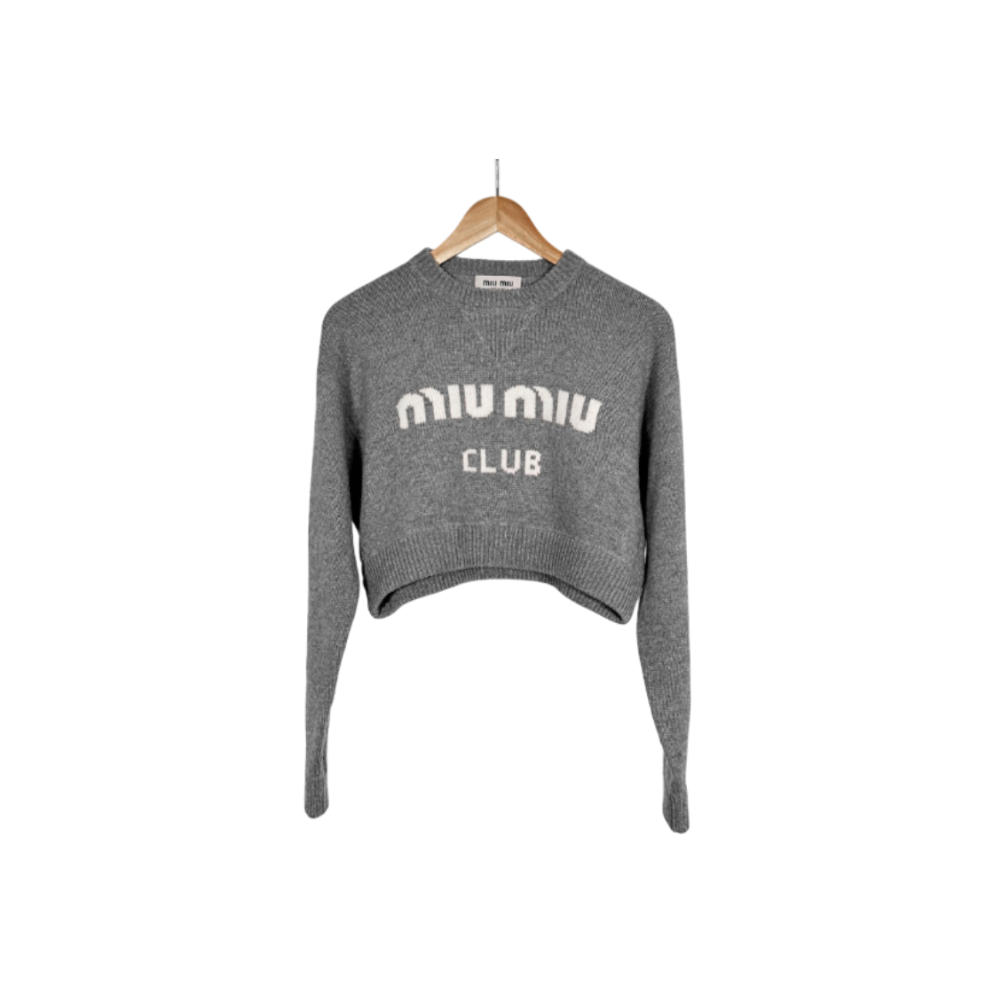 미우미우 여성 로고 캐시미어 크롭 니트 스웨터 그레이 36사이즈