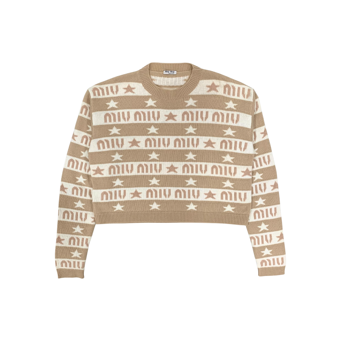 미우미우 자카드 로고 캐시미어 니트 스웨터
