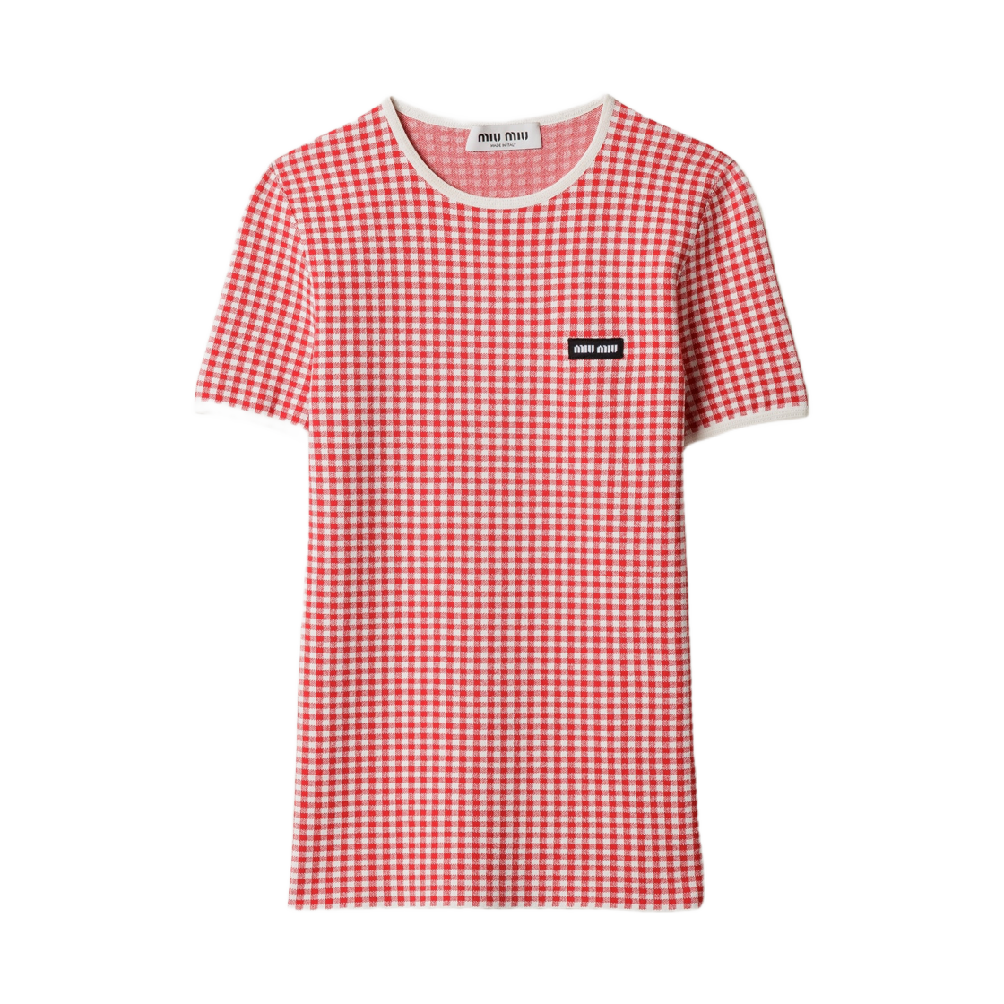 (W) 미우 미우 프린티드 로고 코튼 티셔츠 화이트 레드