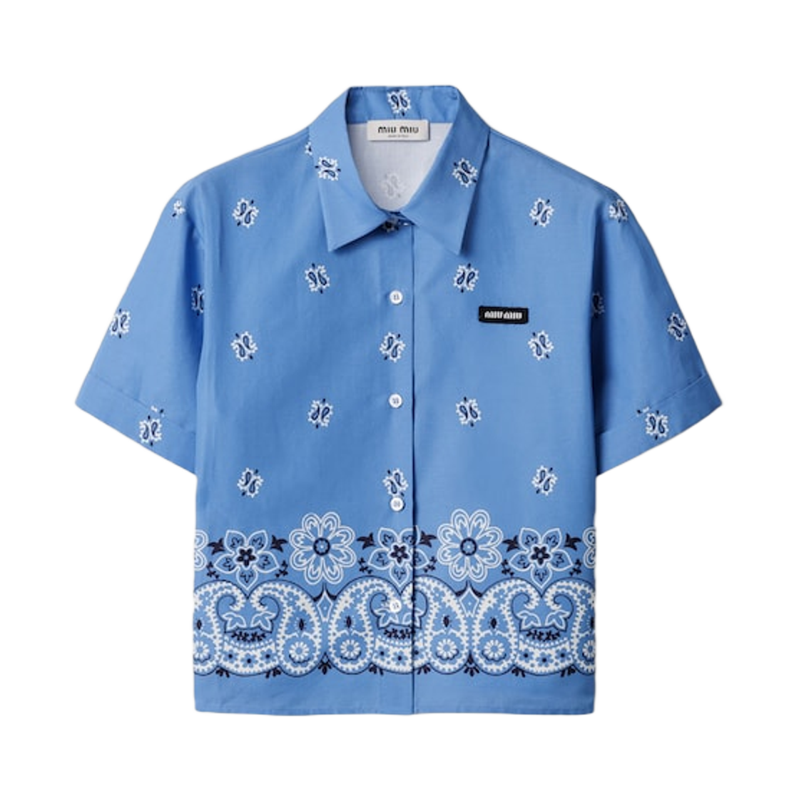 (W) 미우 미우 프린티드 슬럽 포플린 셔츠 라이트 블루 화이트