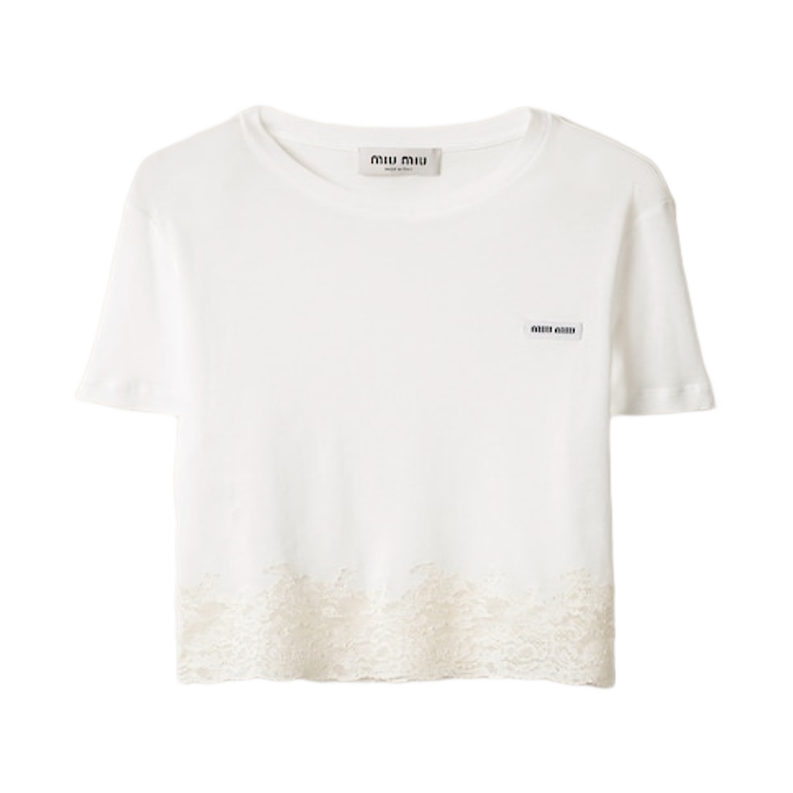 (W) 미우 미우 립 티슈 저지 앤 레이스 티셔츠 화이트