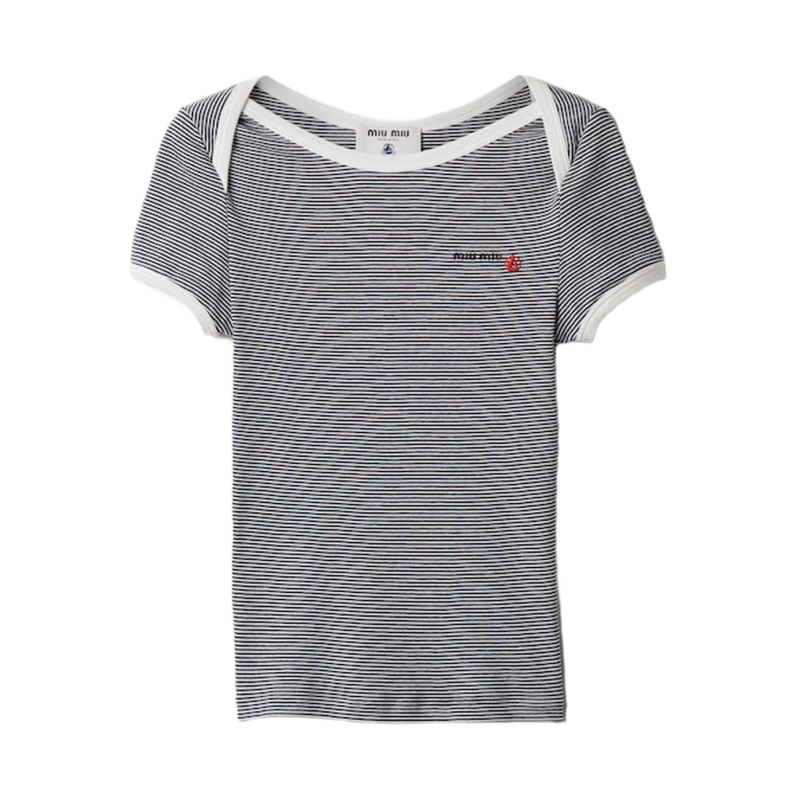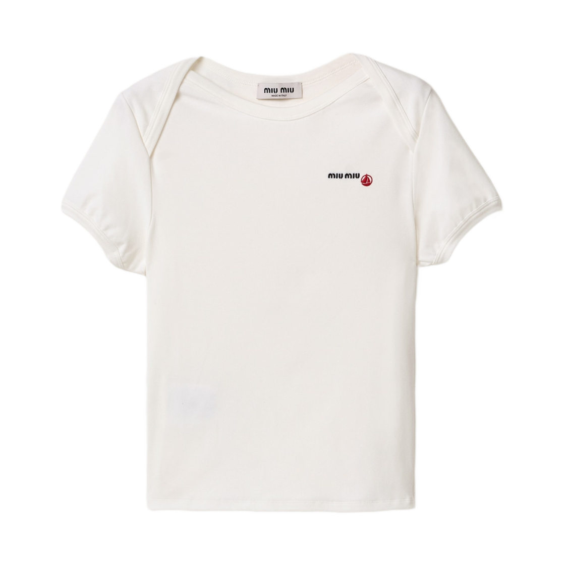 (W) 미우 미우 x 쁘띠 바또 레귤러 스트레치 저지 티셔츠 화이트