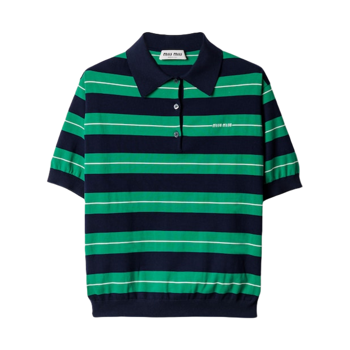 (W) 미우 미우 코튼 니트 폴로 셔츠 블루 그린