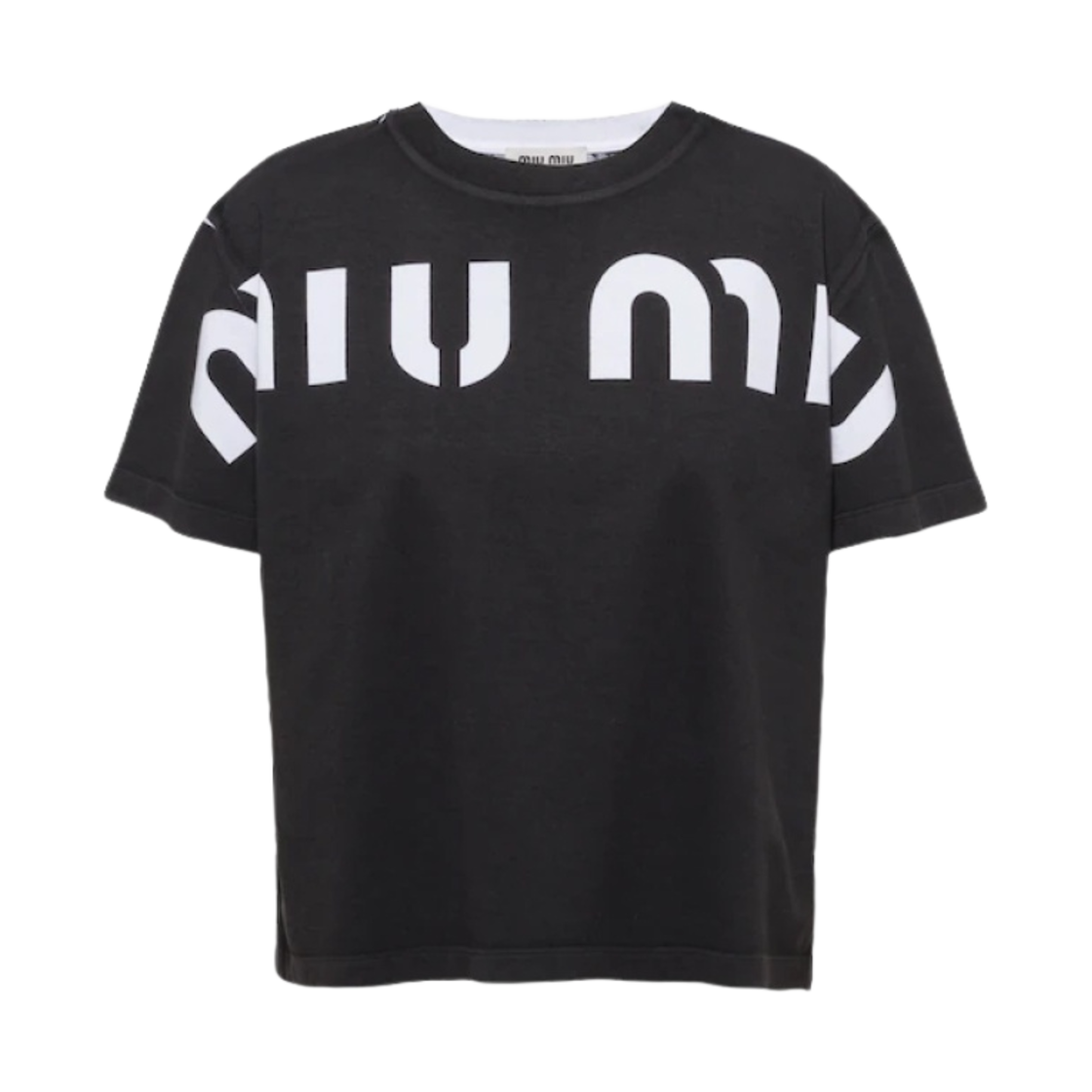 (W) 미우 미우 프린트 코튼 티셔츠 블랙
