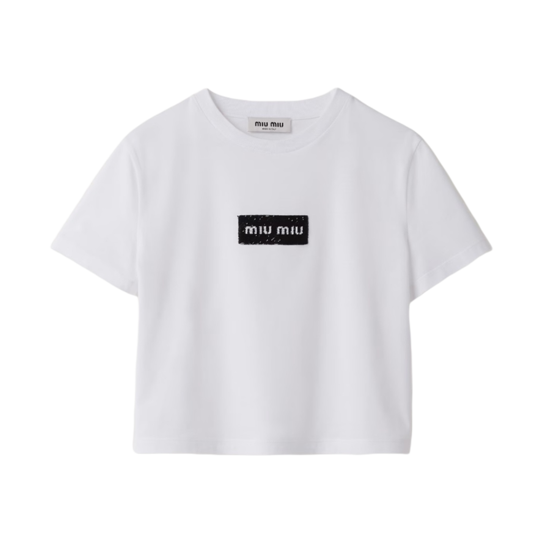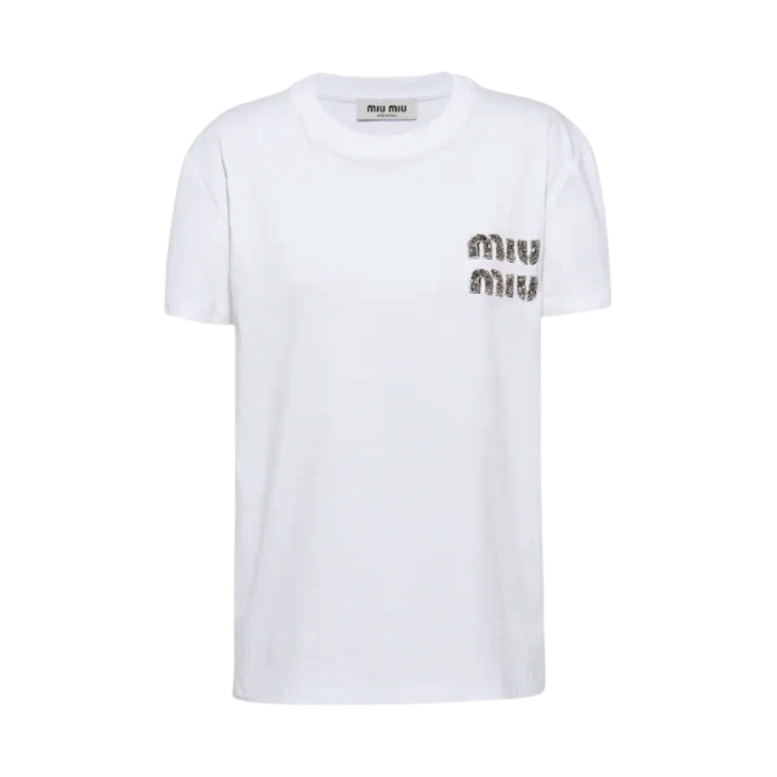 (W) 미우 미우 자수 코튼 티셔츠 화이트 크리스탈