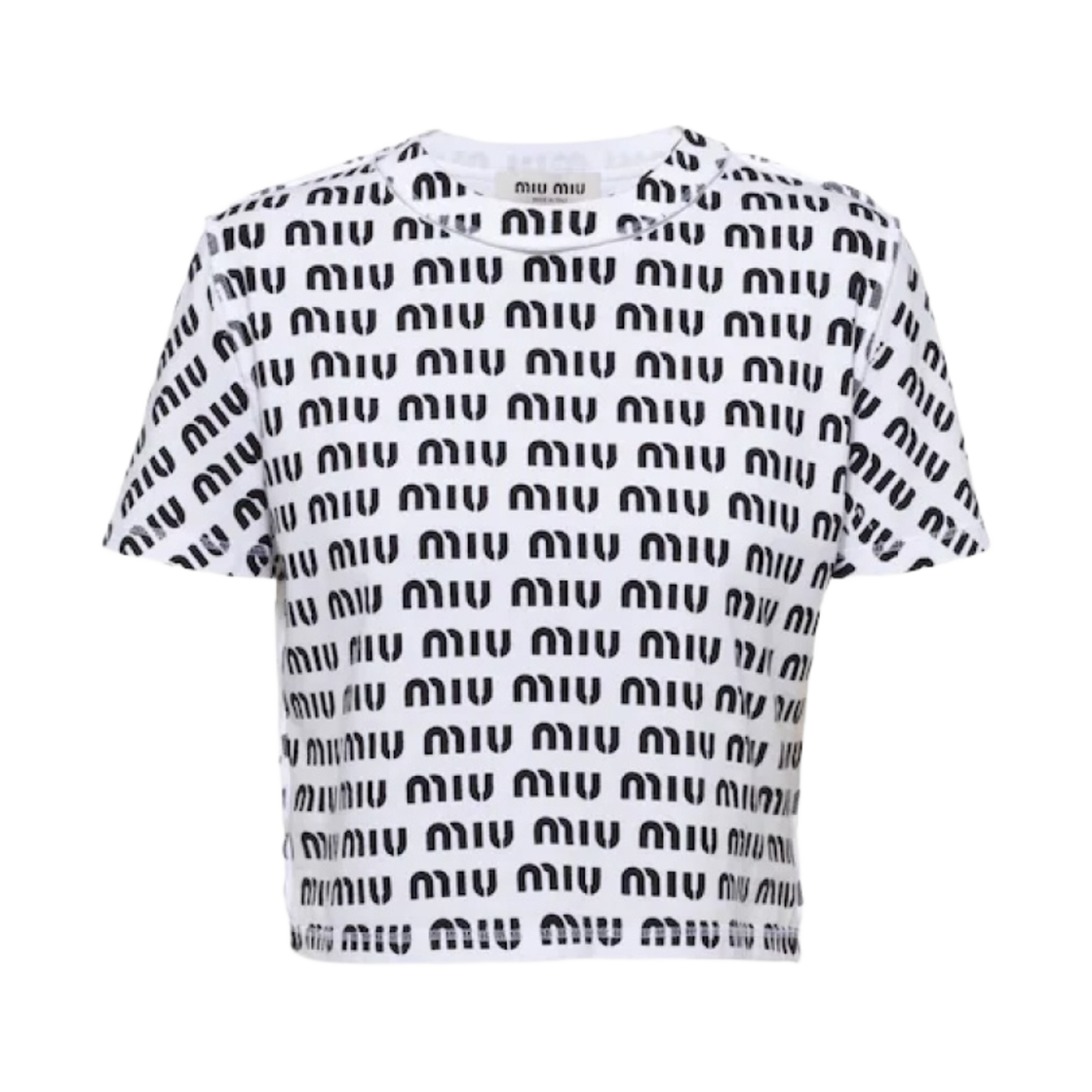 (W) 미우 미우 프린티드 로고 코튼 티셔츠 화이트 블랙