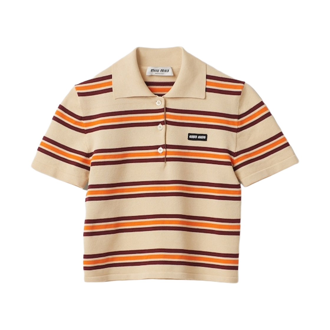미우 미우 코튼 니트 폴로 셔츠 샌드 베이지