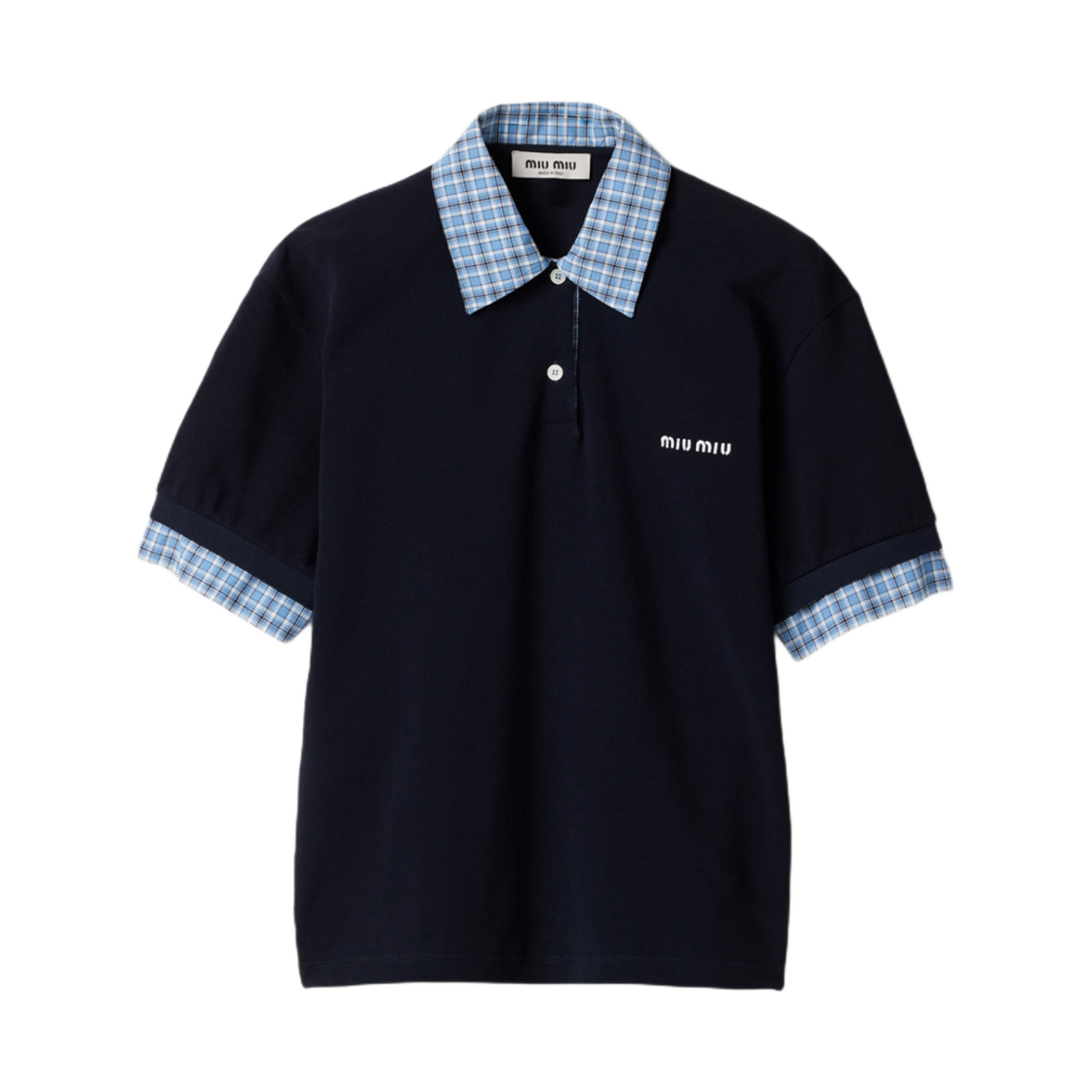 (W) 미우 미우 피케 앤 포플린 폴로 셔츠 블루