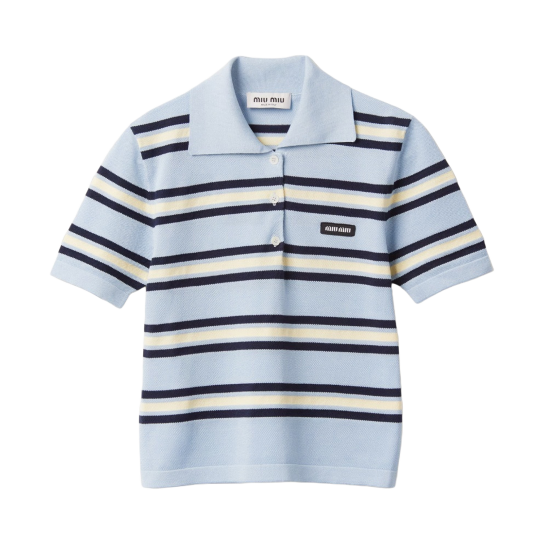 (W) 미우 미우 실크 코튼 니트 폴로 셔츠 스카이 블루