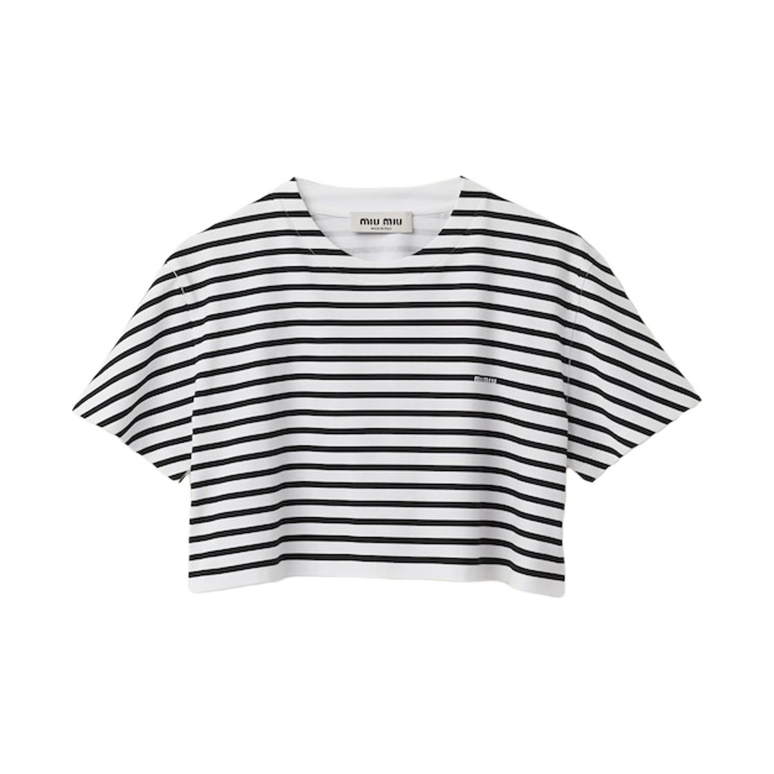 미우미우 여성 자수 로고 스트라이프 크롭 반팔 티셔츠 아이보리