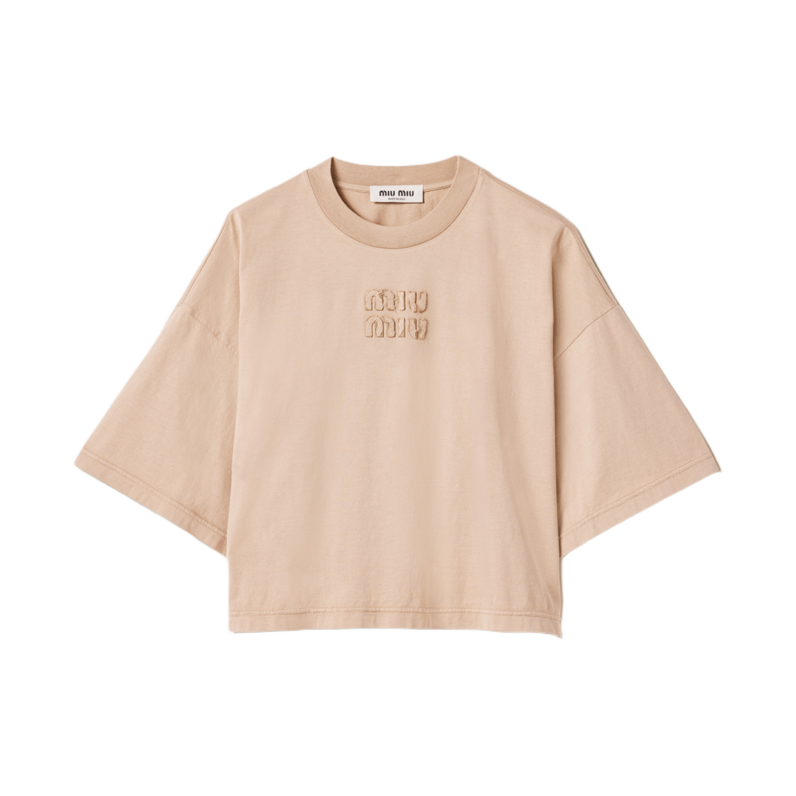 미우 미우 자수 로고 가먼트 다이드 저지 티셔츠 알비노 화이트