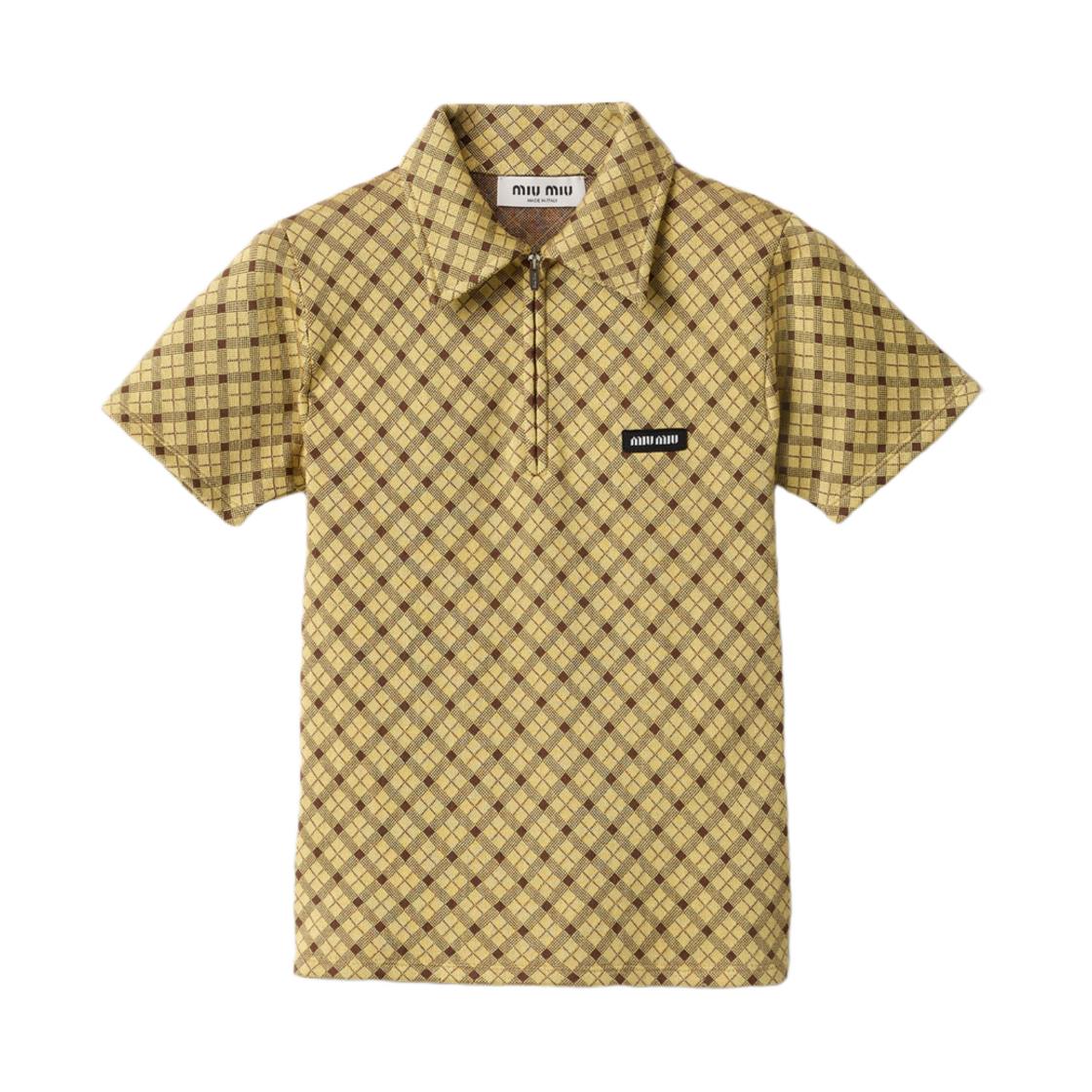 (W) 미우 미우 실크 코튼 니트 폴로 셔츠 크림