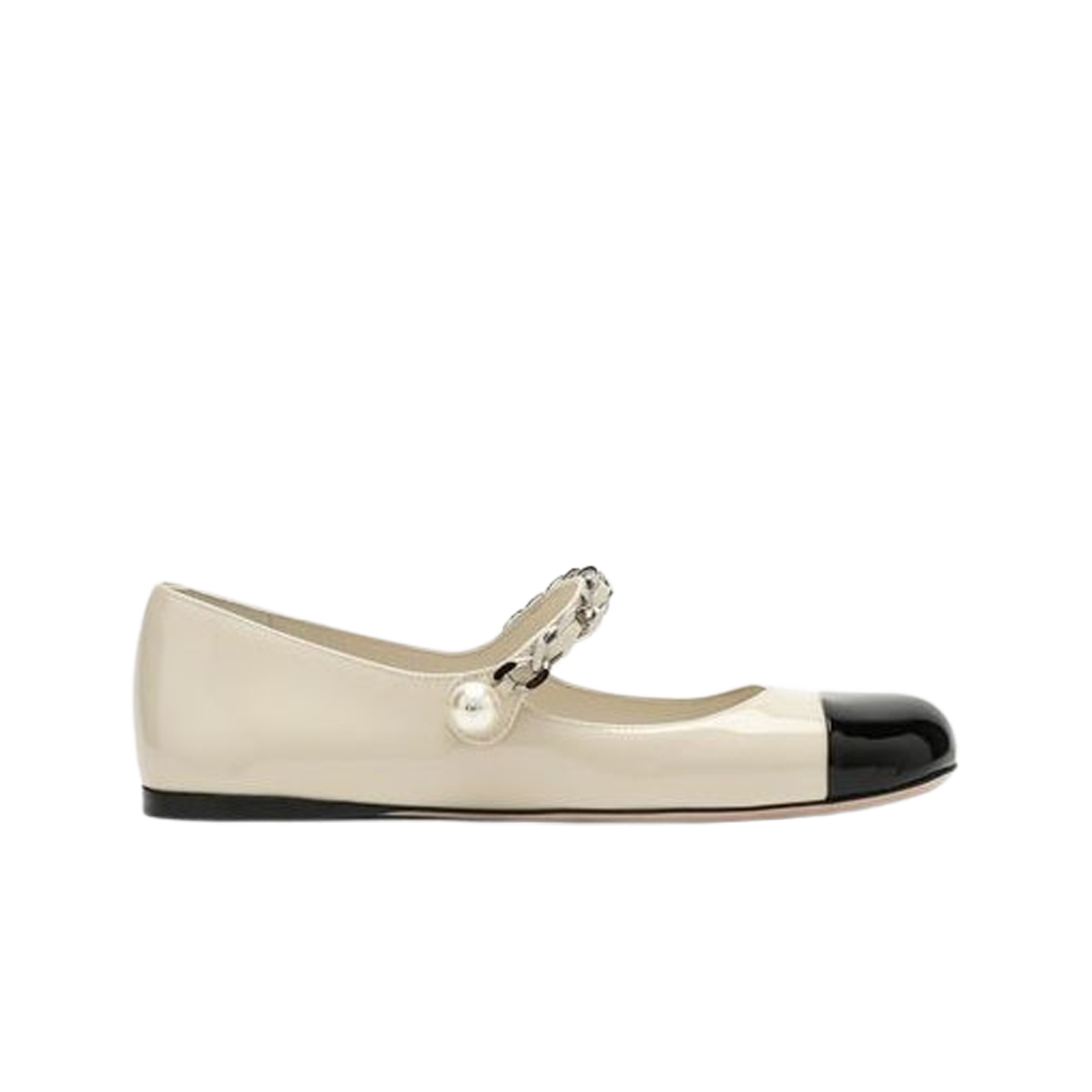 (W) 미우 미우 메탈 체인 아티피셜 펄 레더 발레리나 아이보리 블랙