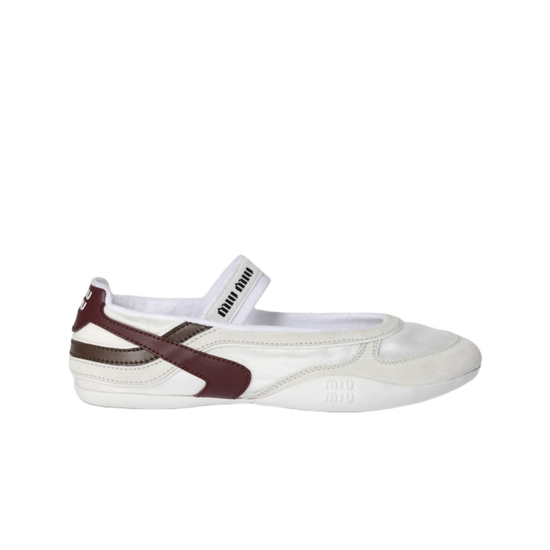 (W) 미우 미우 김나지움 테크니컬 패브릭 앤 스웨이드 발레리나 화이트 버건디