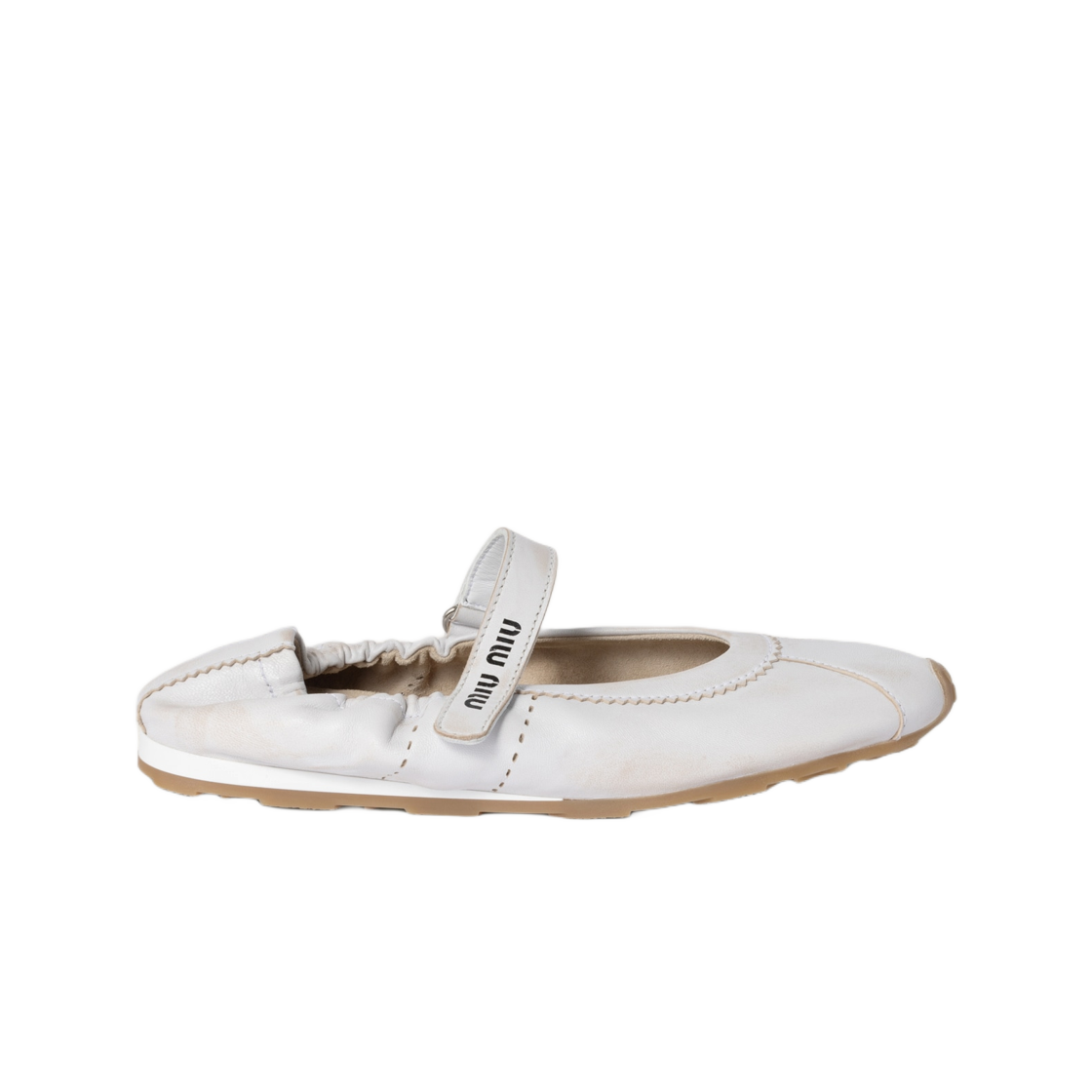 (W) 미우 미우 블리치드 나파 레더 발레리나 화이트