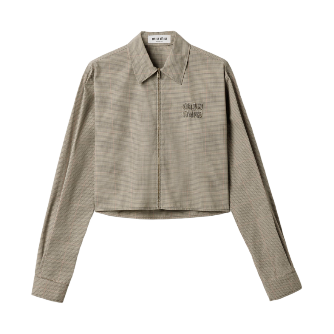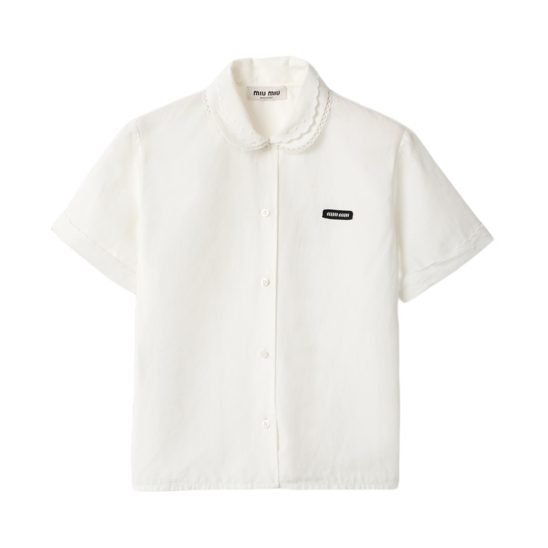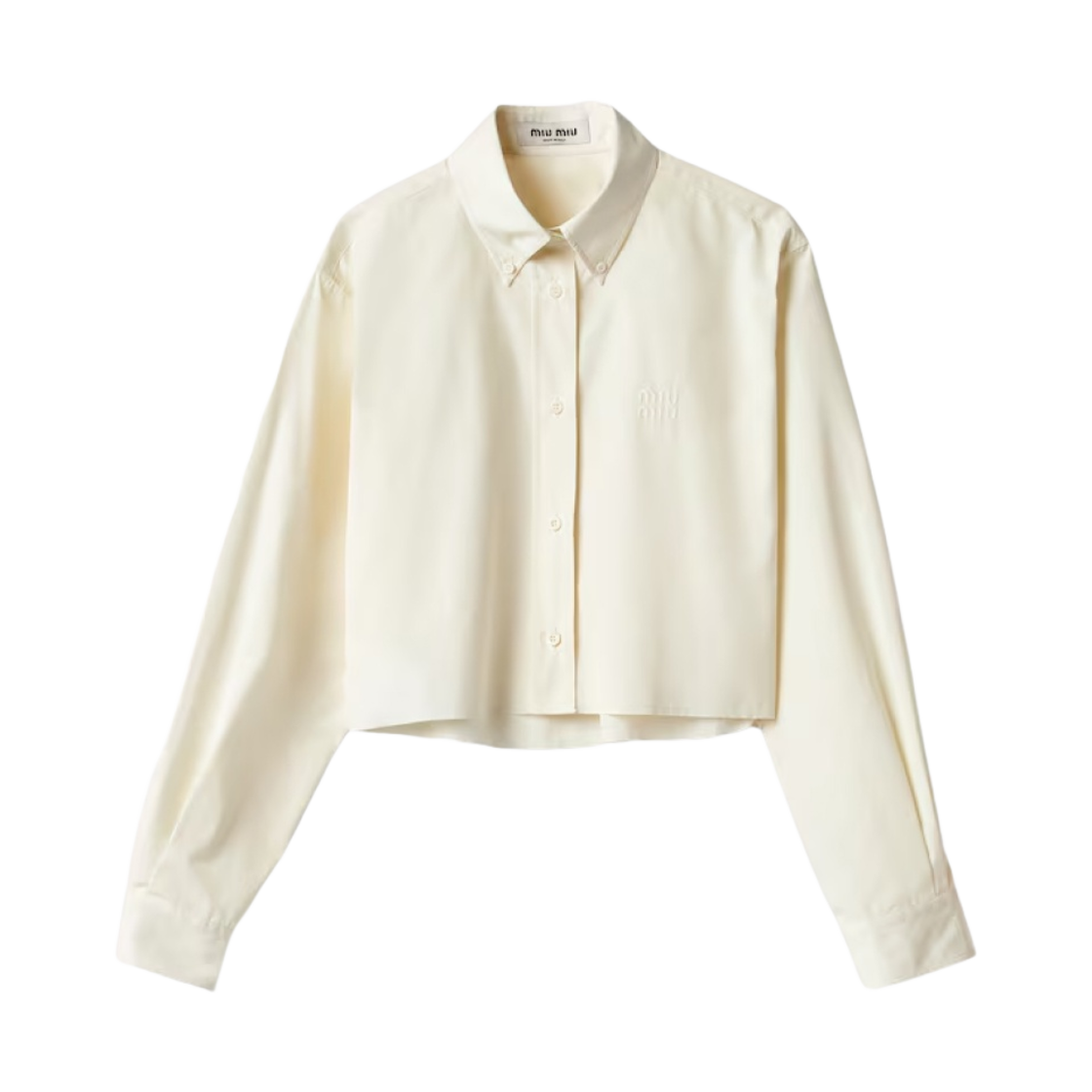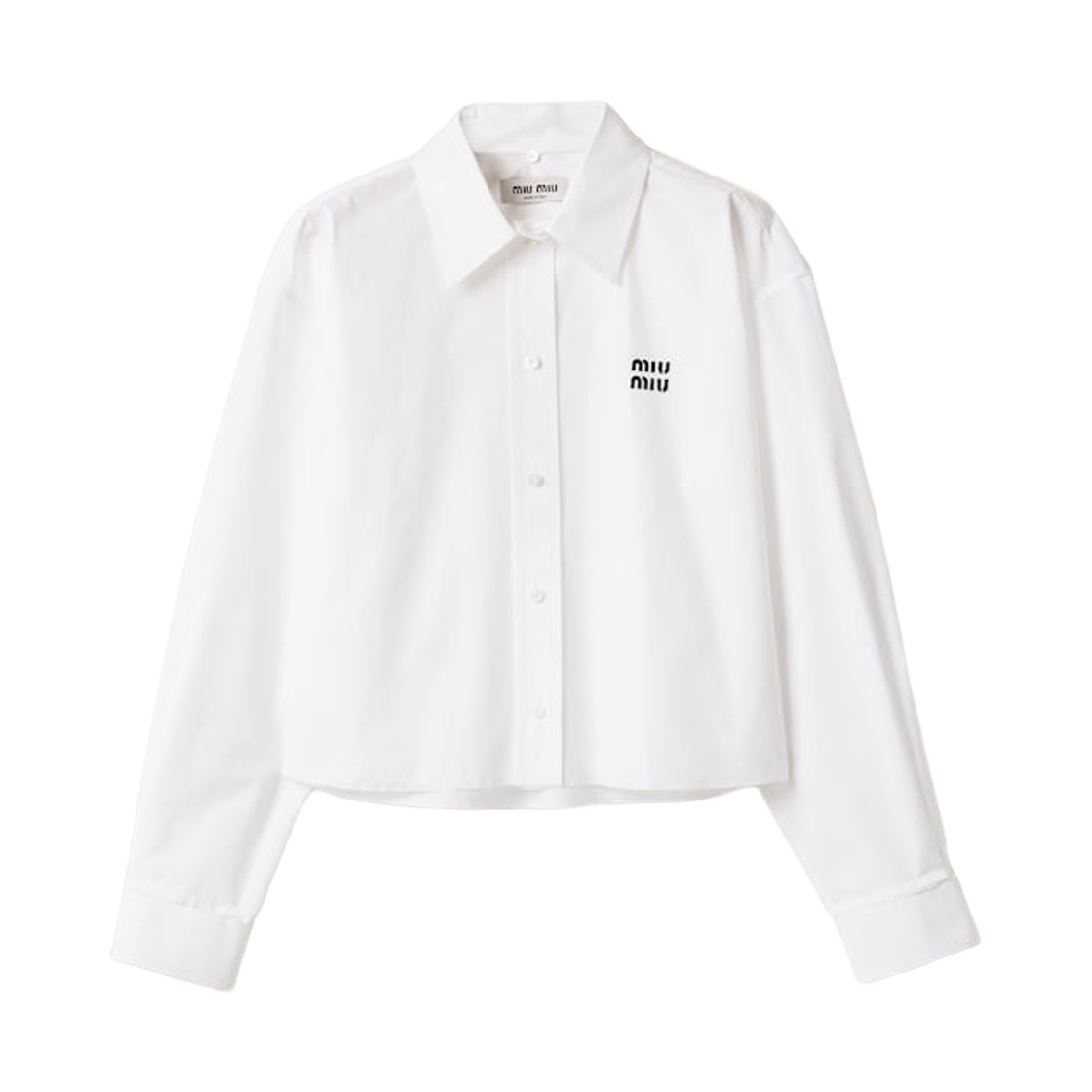 미우미우 여성 엣지 자수로고 크롭 포플린 셔츠