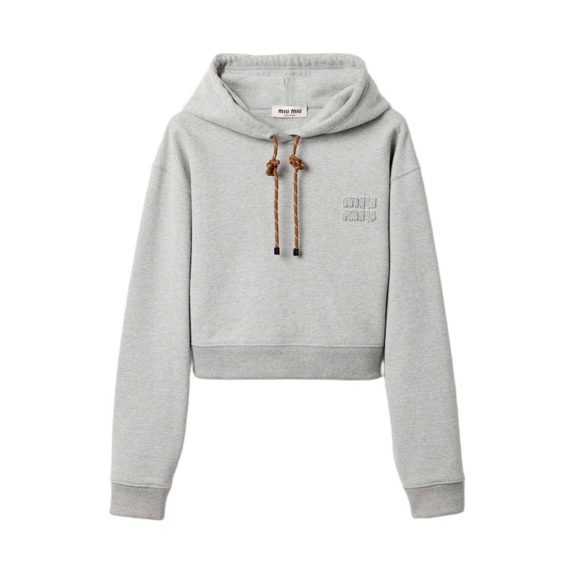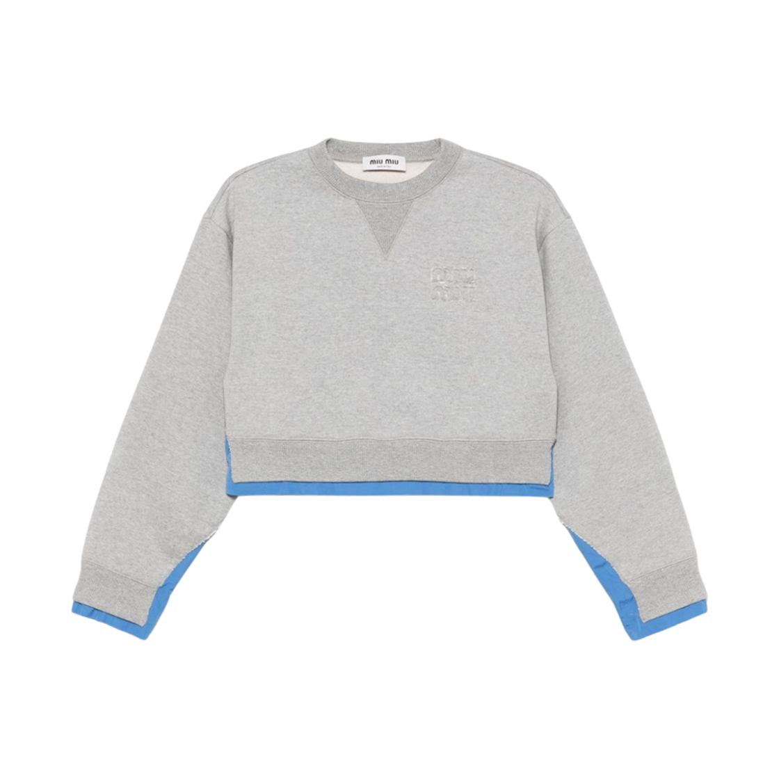 (W) 미우 미우 코튼 플리스 포플린 스웨트셔츠 그레이