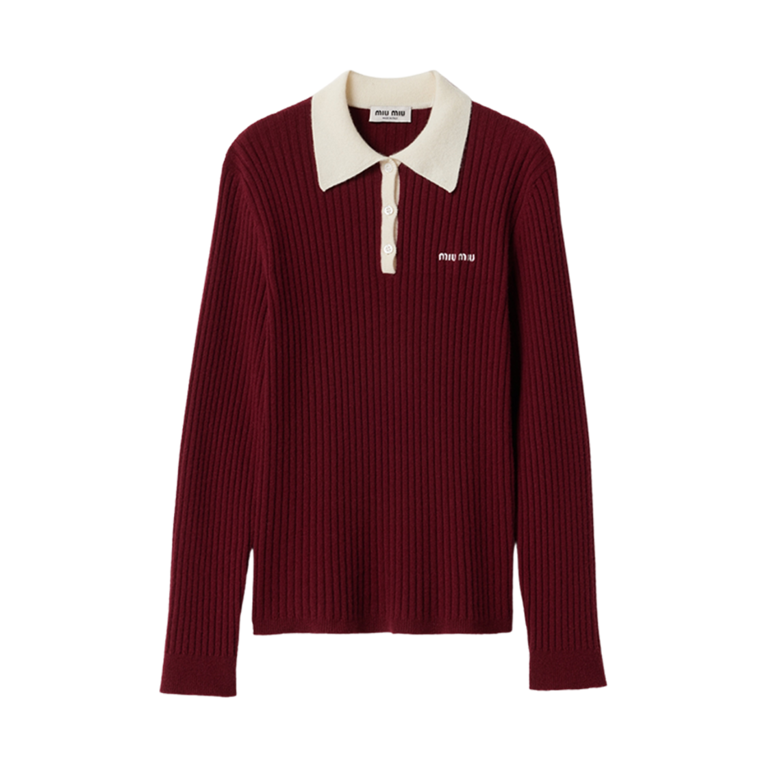 (W) 미우 미우 립드 캐시미어 폴로 셔츠 아마란스 내츄럴