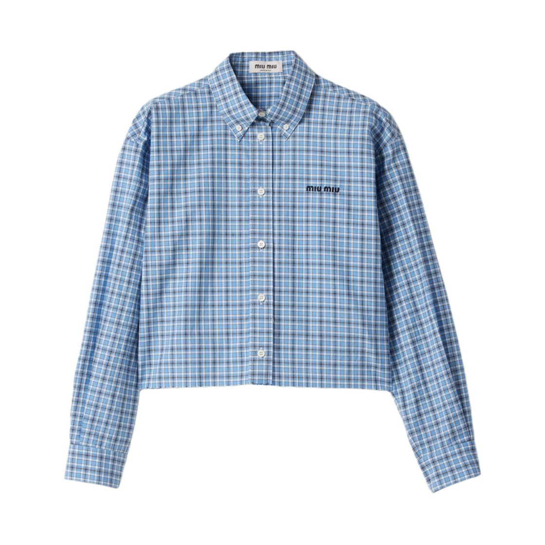 (W) 미우 미우 체크 포플린 셔츠 셀레스트 블루
