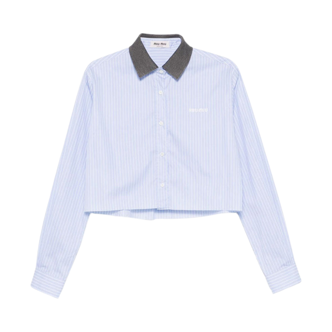 (W) 미우 미우 스트라이프 포플린 셔츠 스카이 블루 화이트