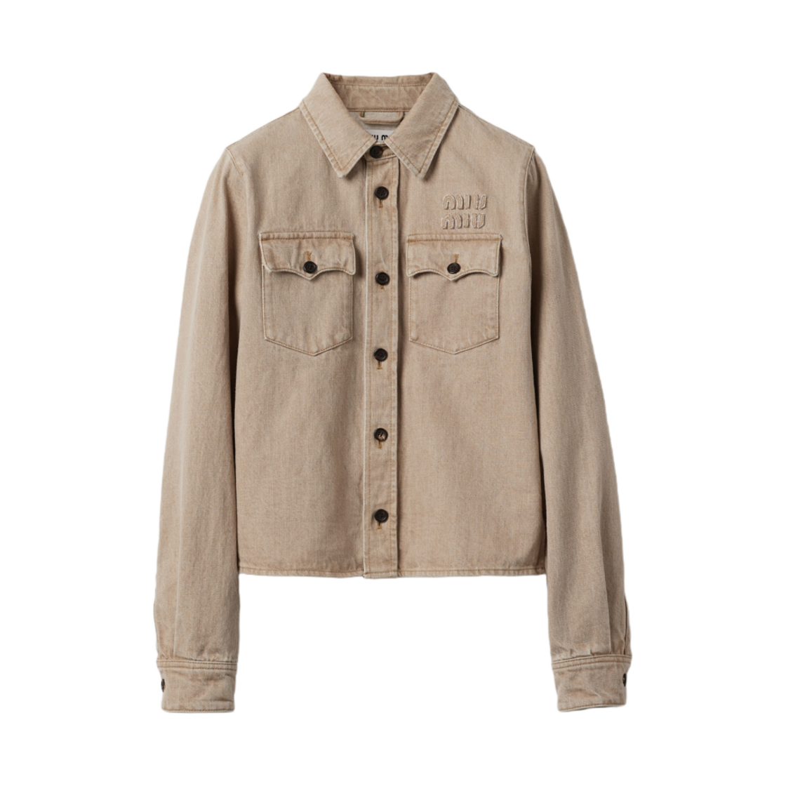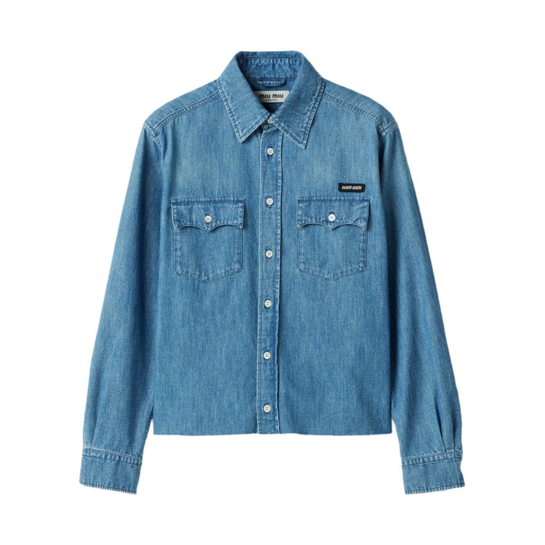 미우미우 24ss 샴브레이 자수 로고 데님 셔츠 라이트 블루
