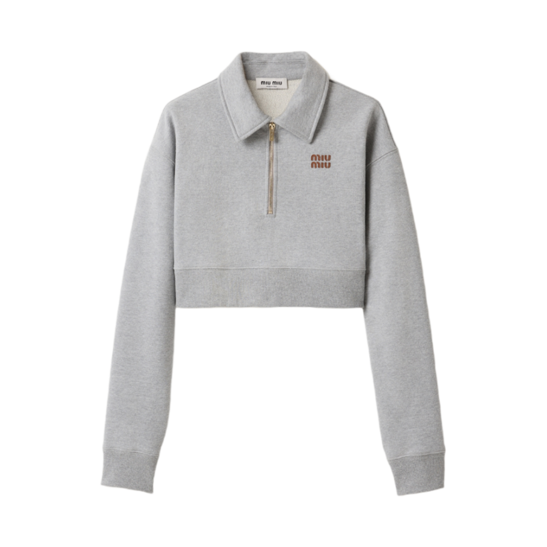 (W) 미우 미우 하프 지퍼 박시 코튼 플리스 스웨트셔츠 그레이