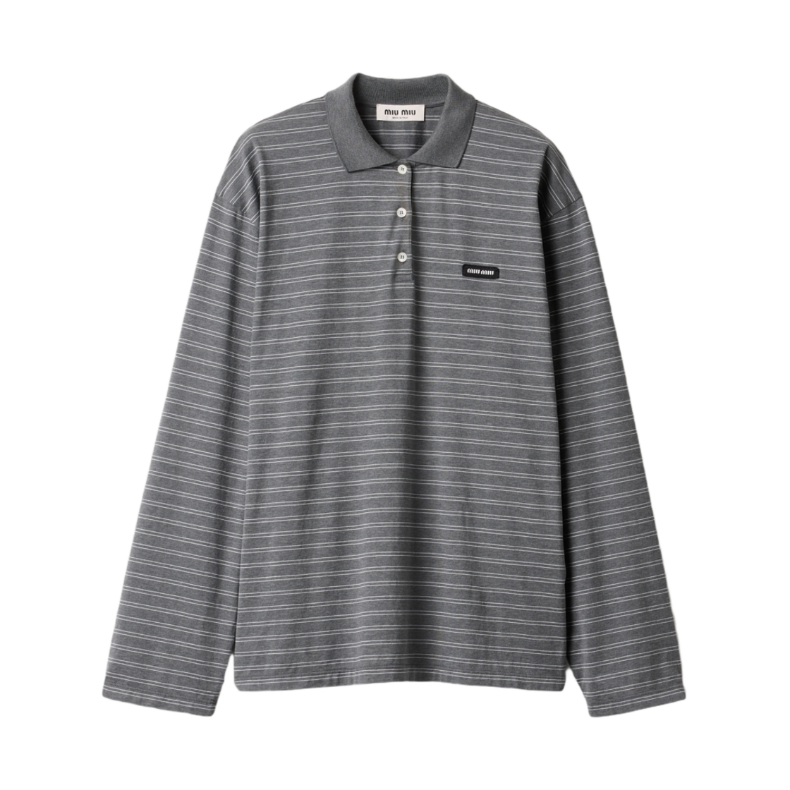 (W) 미우 미우 코튼 저지 폴로 셔츠 슬레이트 그레이 화이트