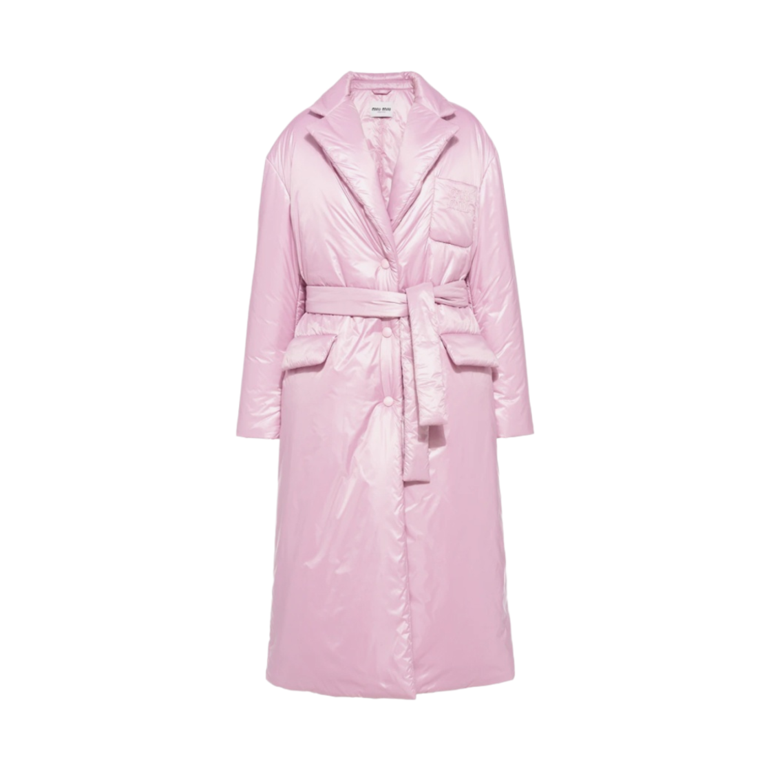 (W) 미우 미우 벨티드 나일론 다운 코트 앨러배스터 핑크