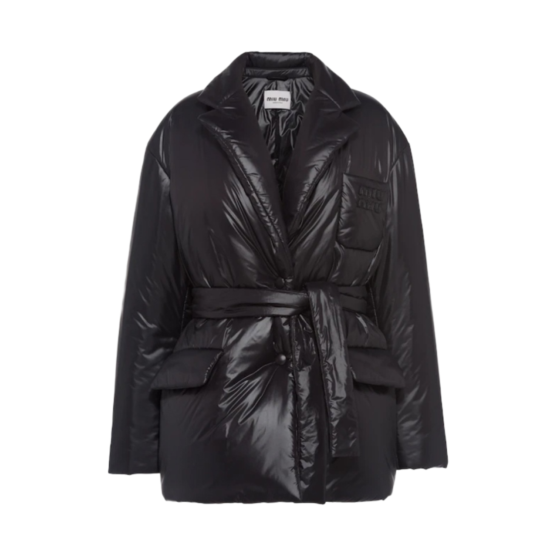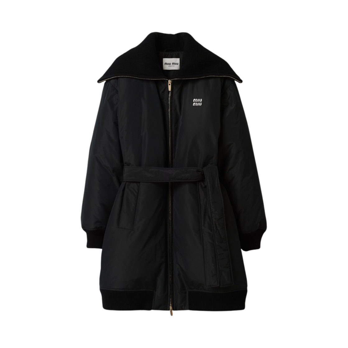 (W) 미우 미우 벨티드 나일론 다운 코트 블랙