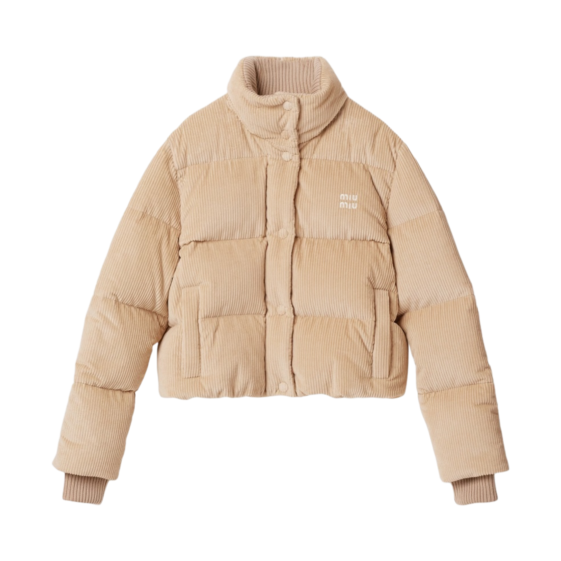 (W) 미우 미우 미디움 웨이트 코듀로이 다운 자켓 샌드 베이지