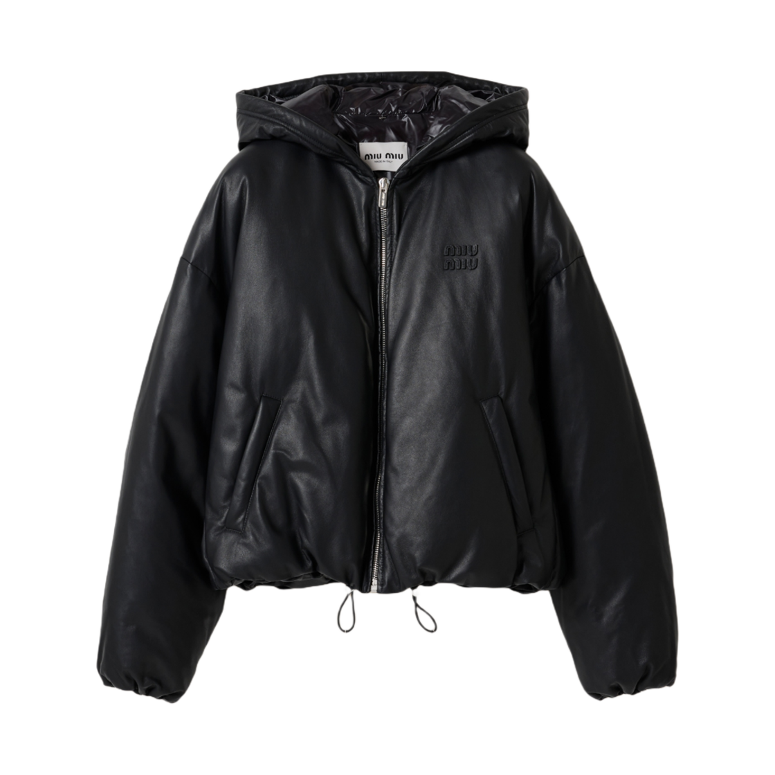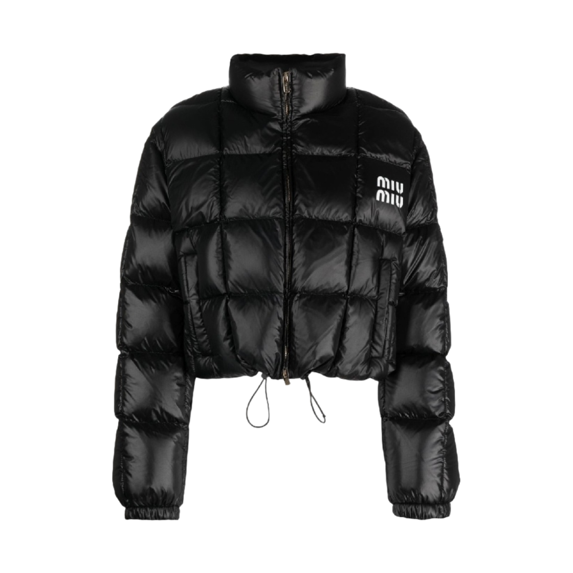 (W) 미우 미우 테크니컬 폰지 크롭 다운 자켓 블랙