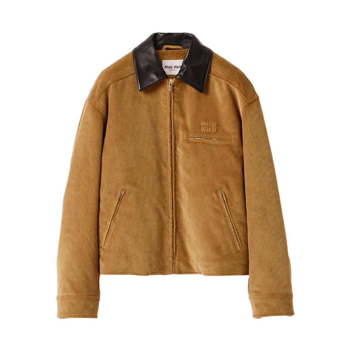 (W) 미우 미우 코듀로이 앤 나파 레더 다운 자켓 코르크 베이지