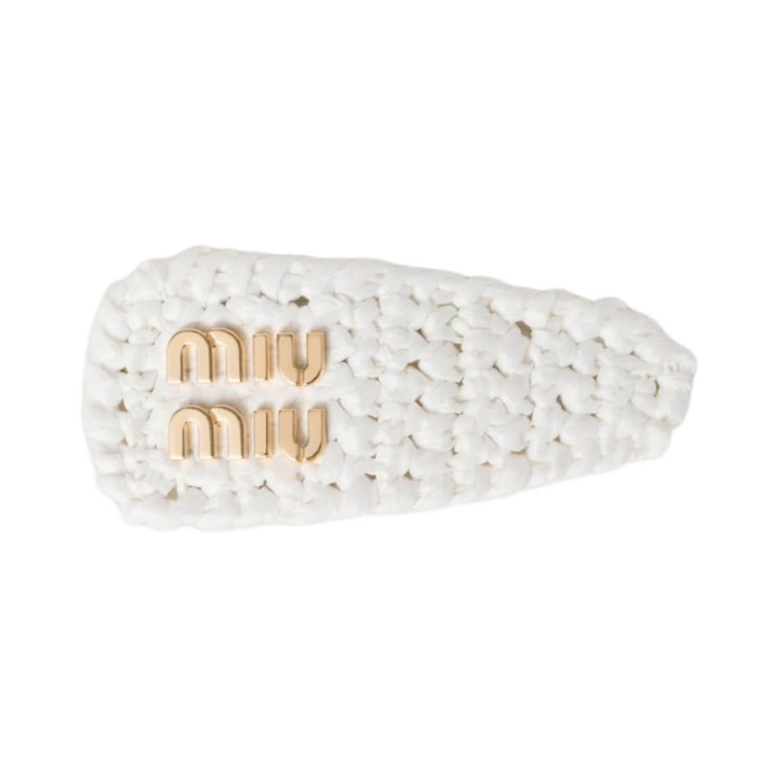 (W) 미우 미우 우븐 패브릭 헤어 클립 화이트