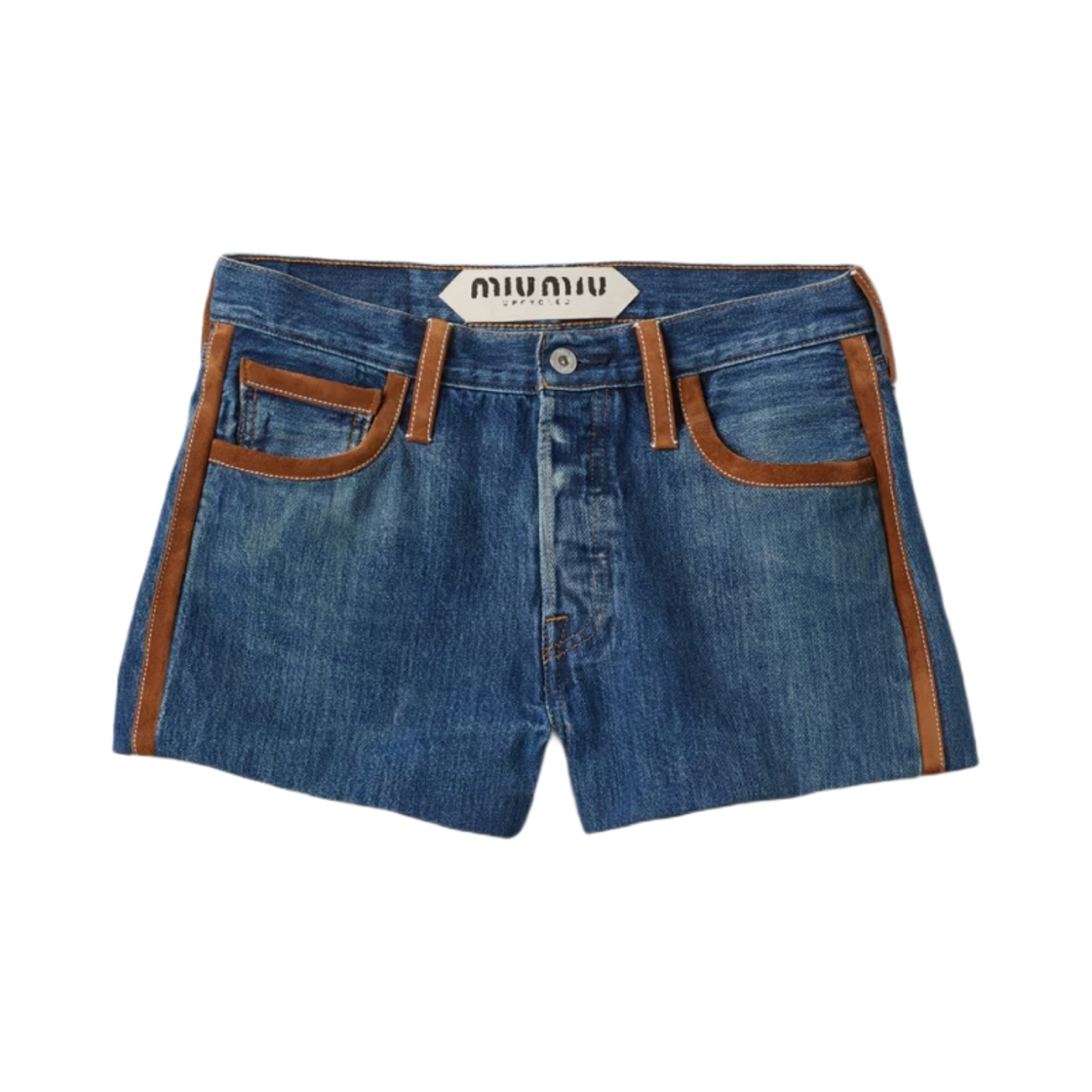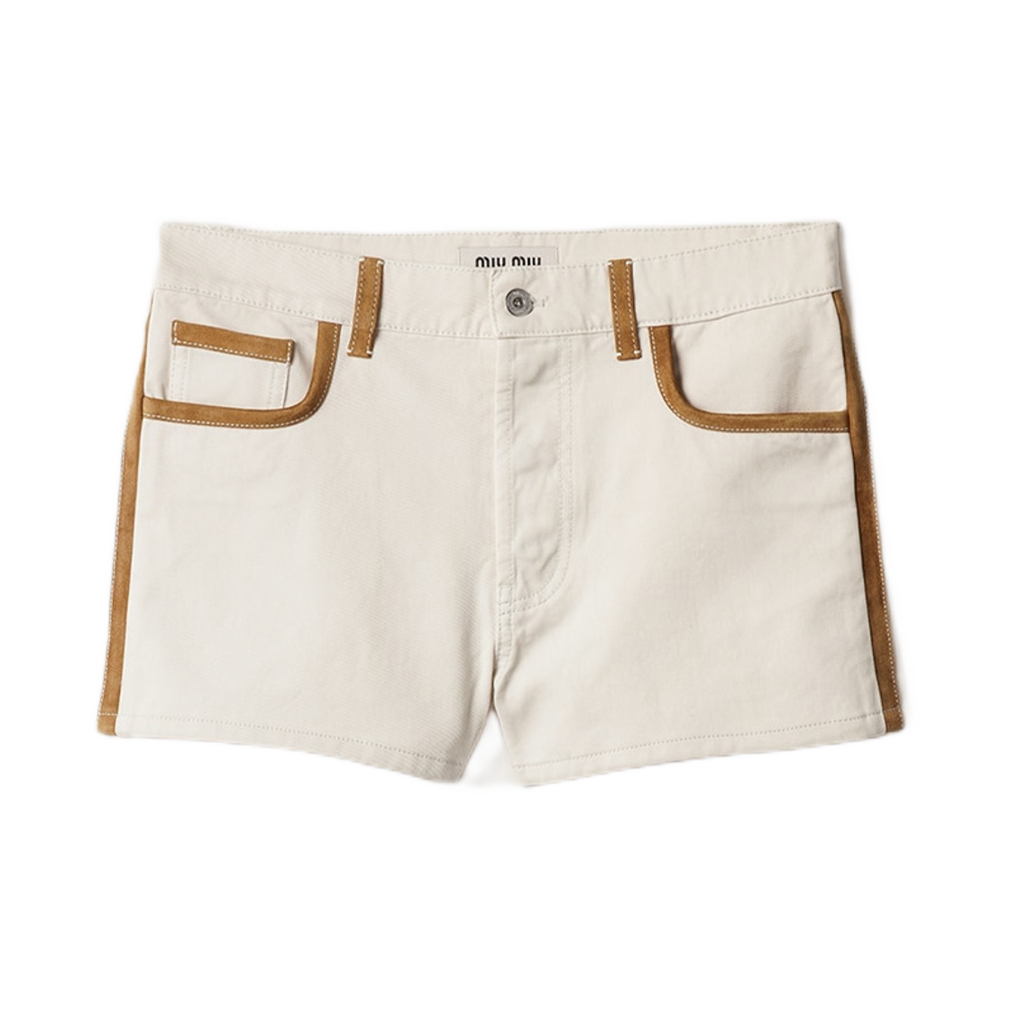 (W) 미우 미우 데님 앤 가죽 쇼츠 화이트
