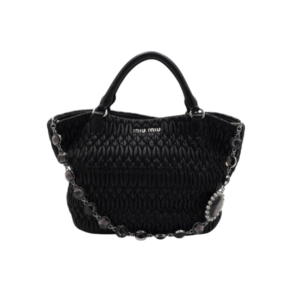 미우미우 RN0896 블랙 레더 나파 크리스탈 클로케 여성 토트백 겸 숄더백aa60621