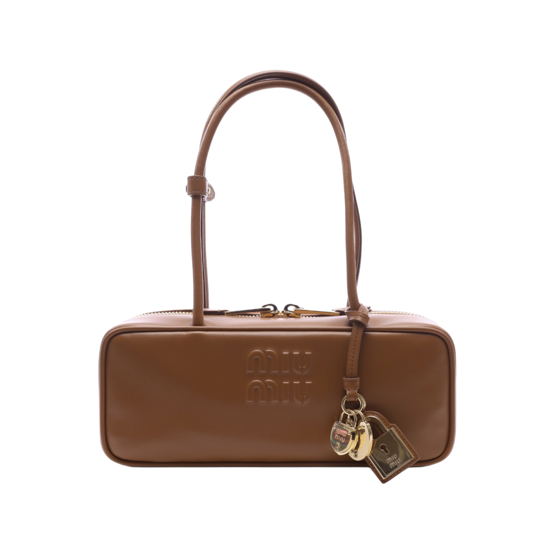 [20% 쿠폰] 미우 미우 아르카디 레더 백 꼬냑