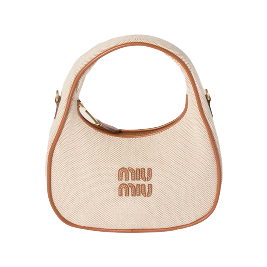 [20% 쿠폰] 미우 미우 완더 캔버스 레더 백 베이지 브랜디
