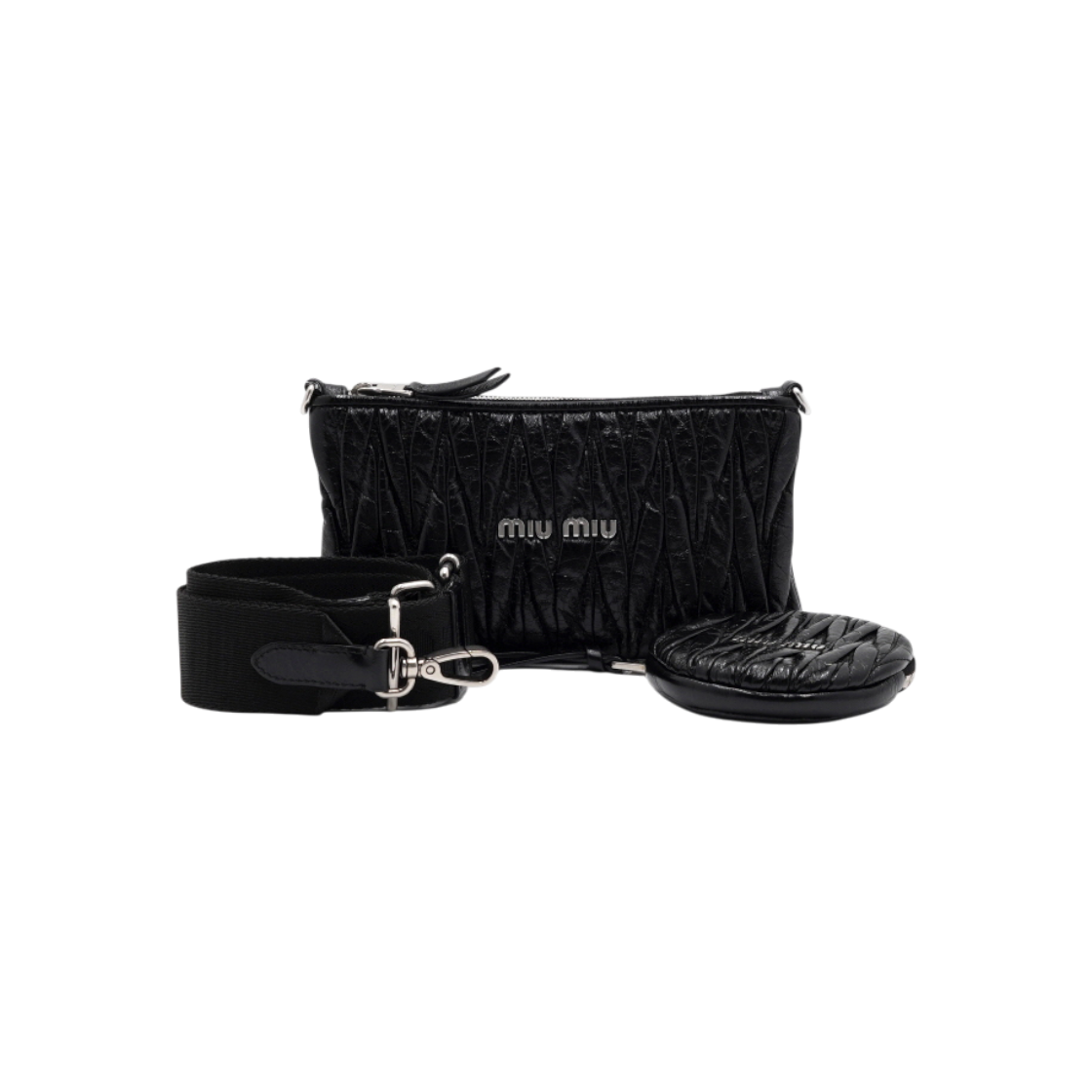 미우미우 블랙 마테라쎄 크로스백 A-A20560