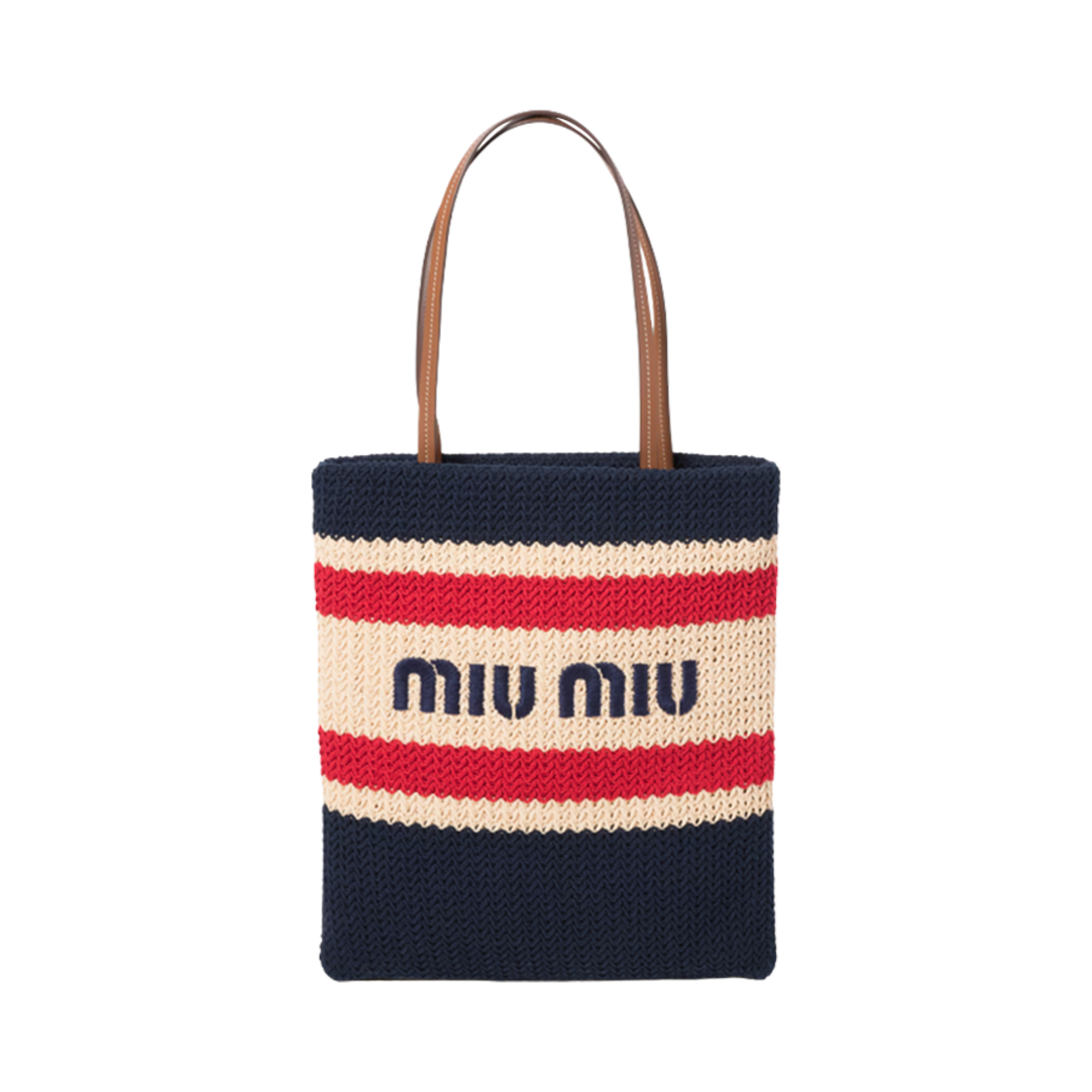 미우 미우 라피아 이펙트 우븐 토트백 내츄럴 블루