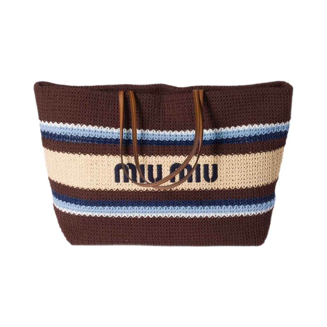 미우 미우 라피아 이펙트 우븐 토트백 코코아 브라운 셀레스트 내츄럴