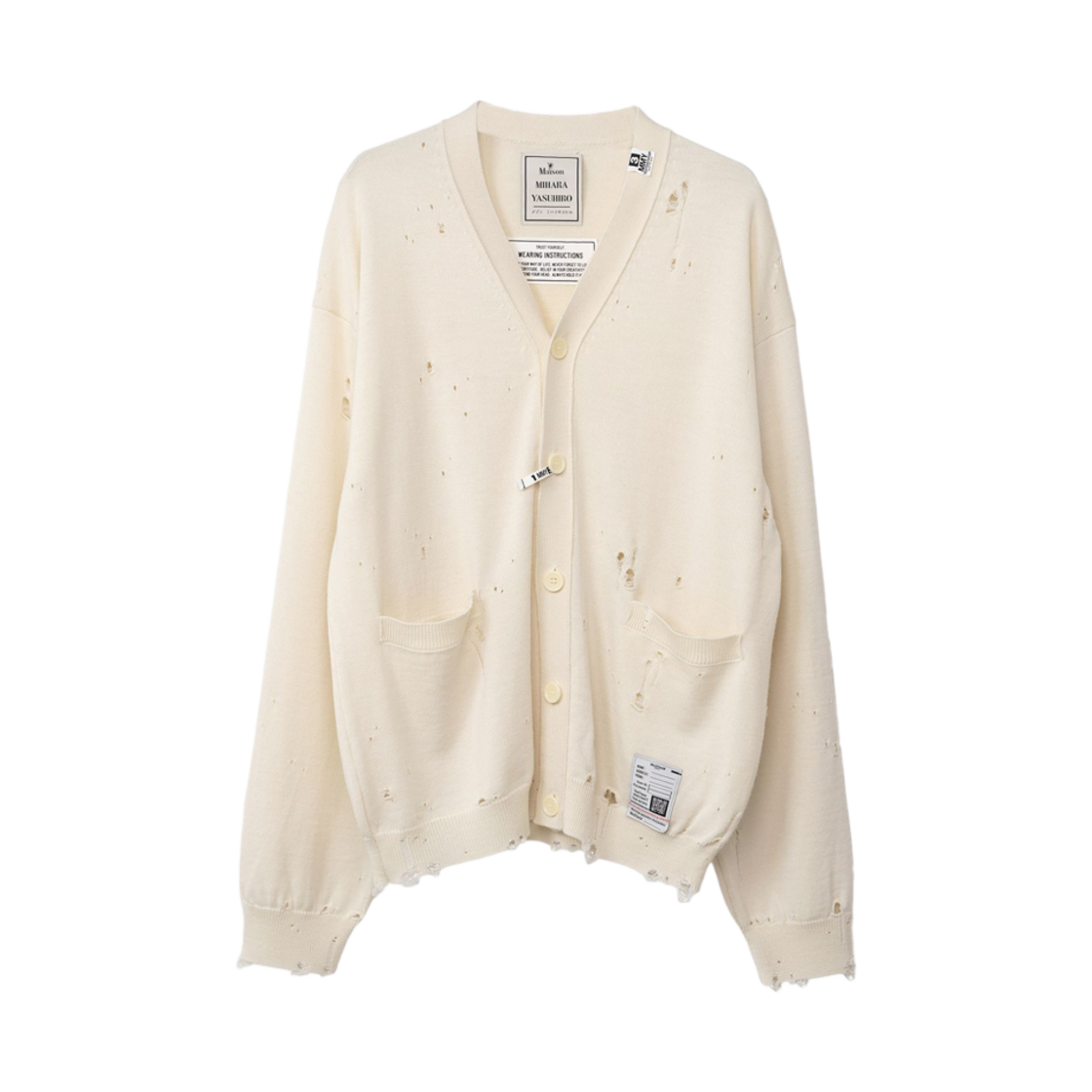 메종 미하라 야스히로 디스트레스 니트 가디건 화이트