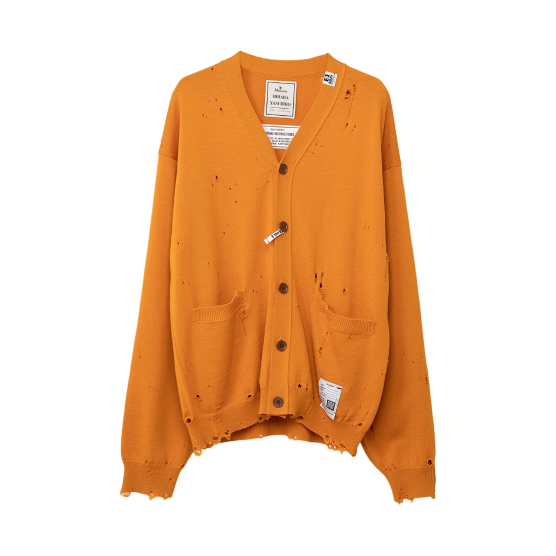 메종 미하라 야스히로 디스트레스 니트 가디건 오렌지