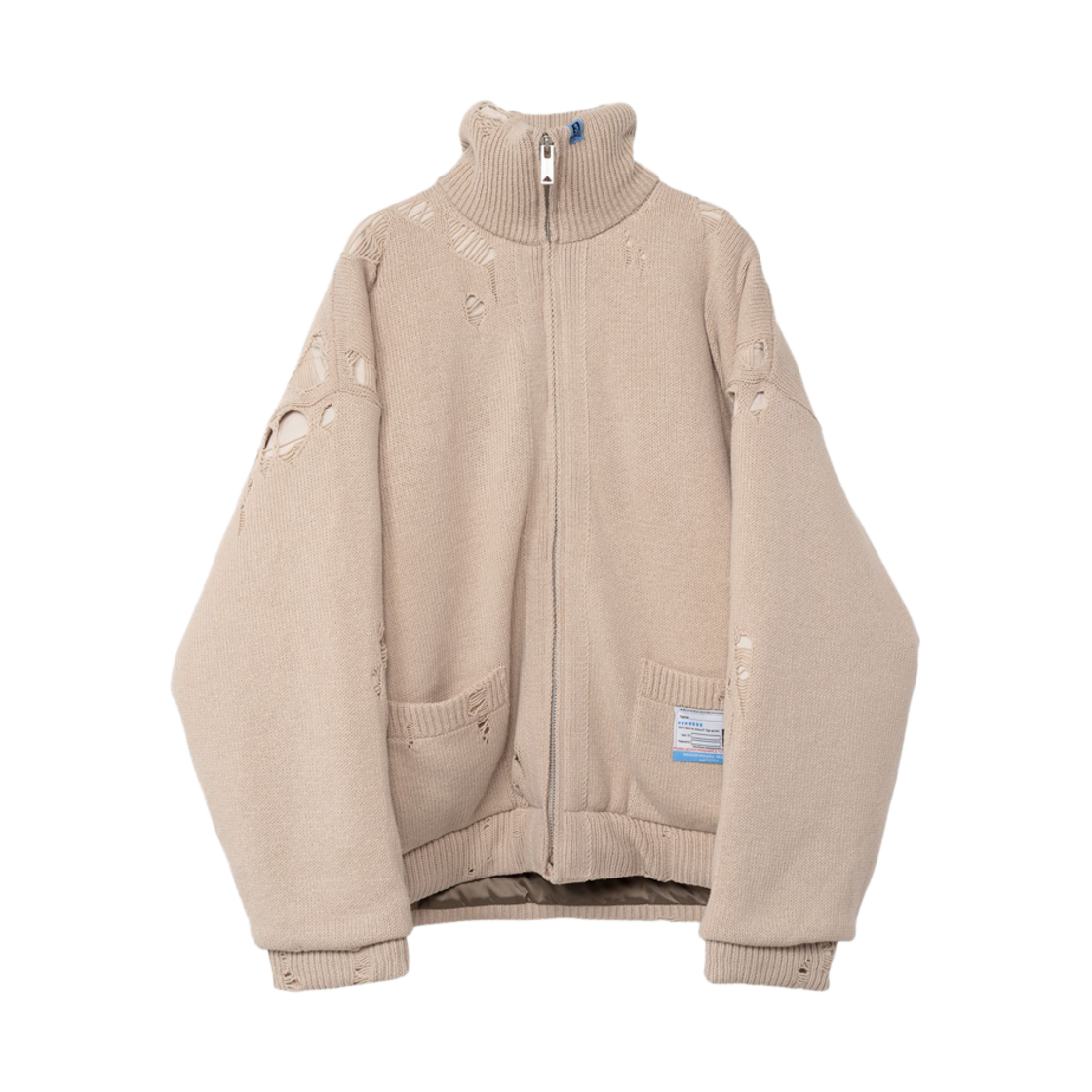메종 미하라 야스히로 패디드 집업 니트 가디건 베이지