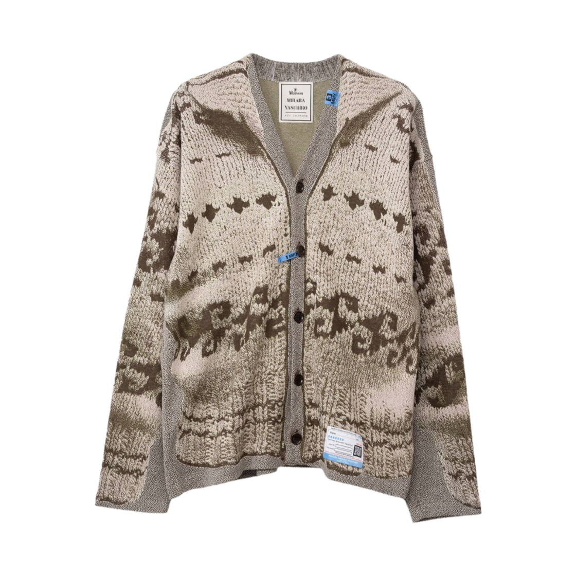 메종 미하라 야스히로 자카드 니트 가디건 브라운
