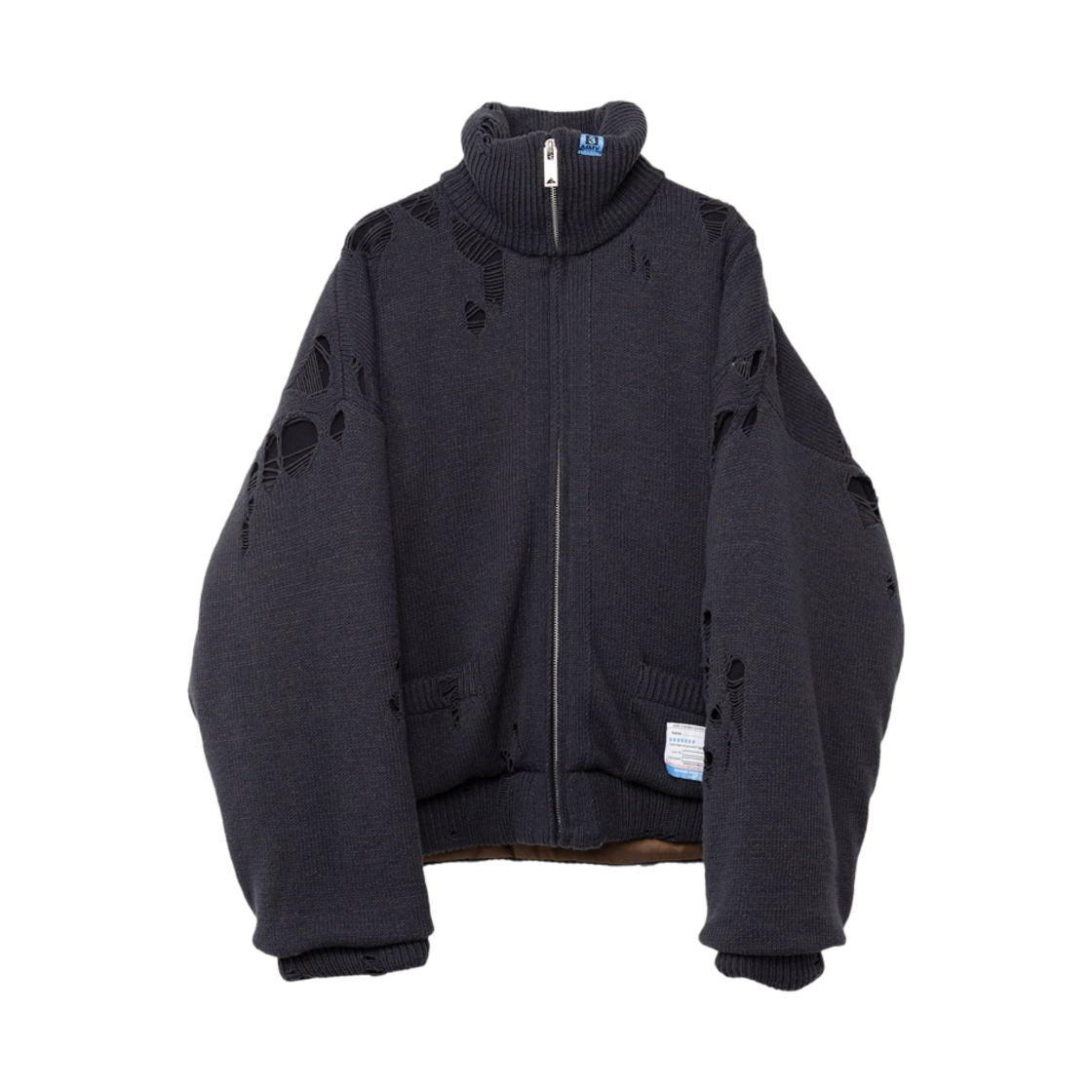 메종 미하라 야스히로 패디드 집업 니트 가디건 블랙