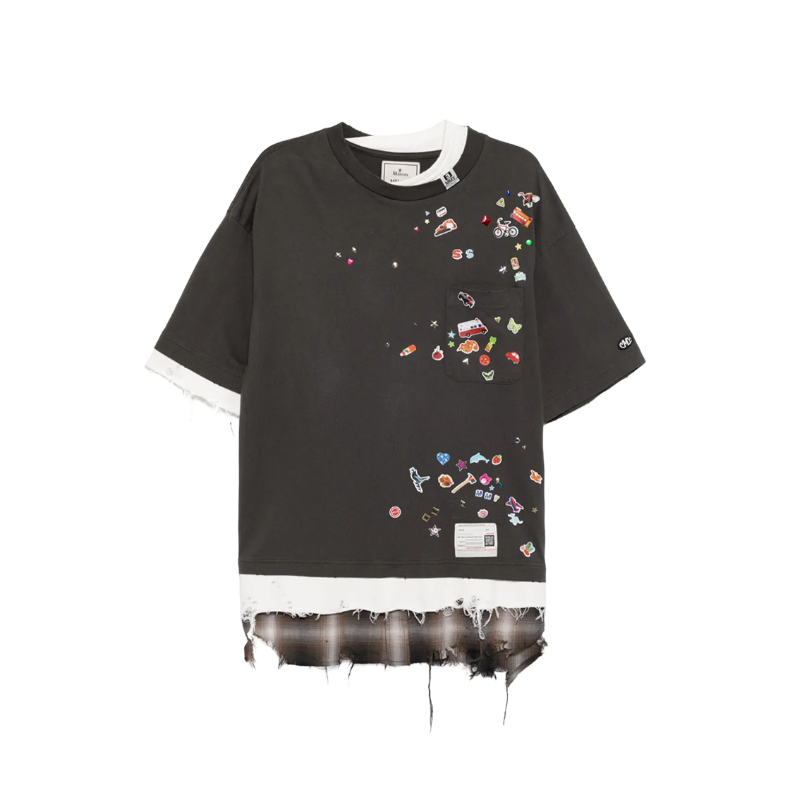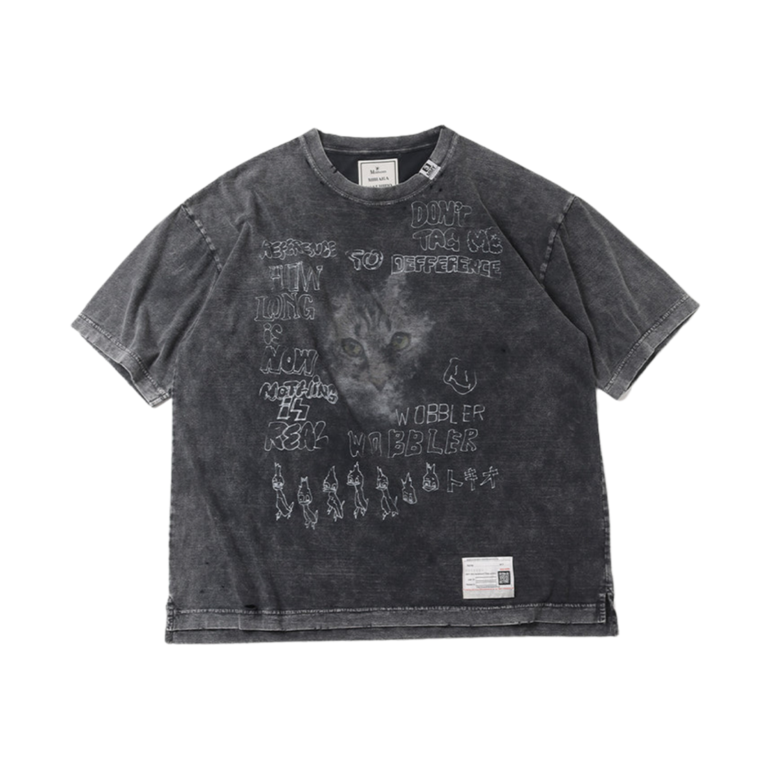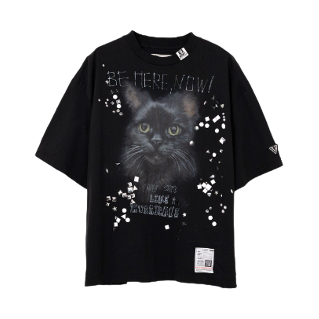 (W) 메종 미하라 야스히로 캣 프린트 엠벨리시드 디스트레스드 티셔츠 블랙