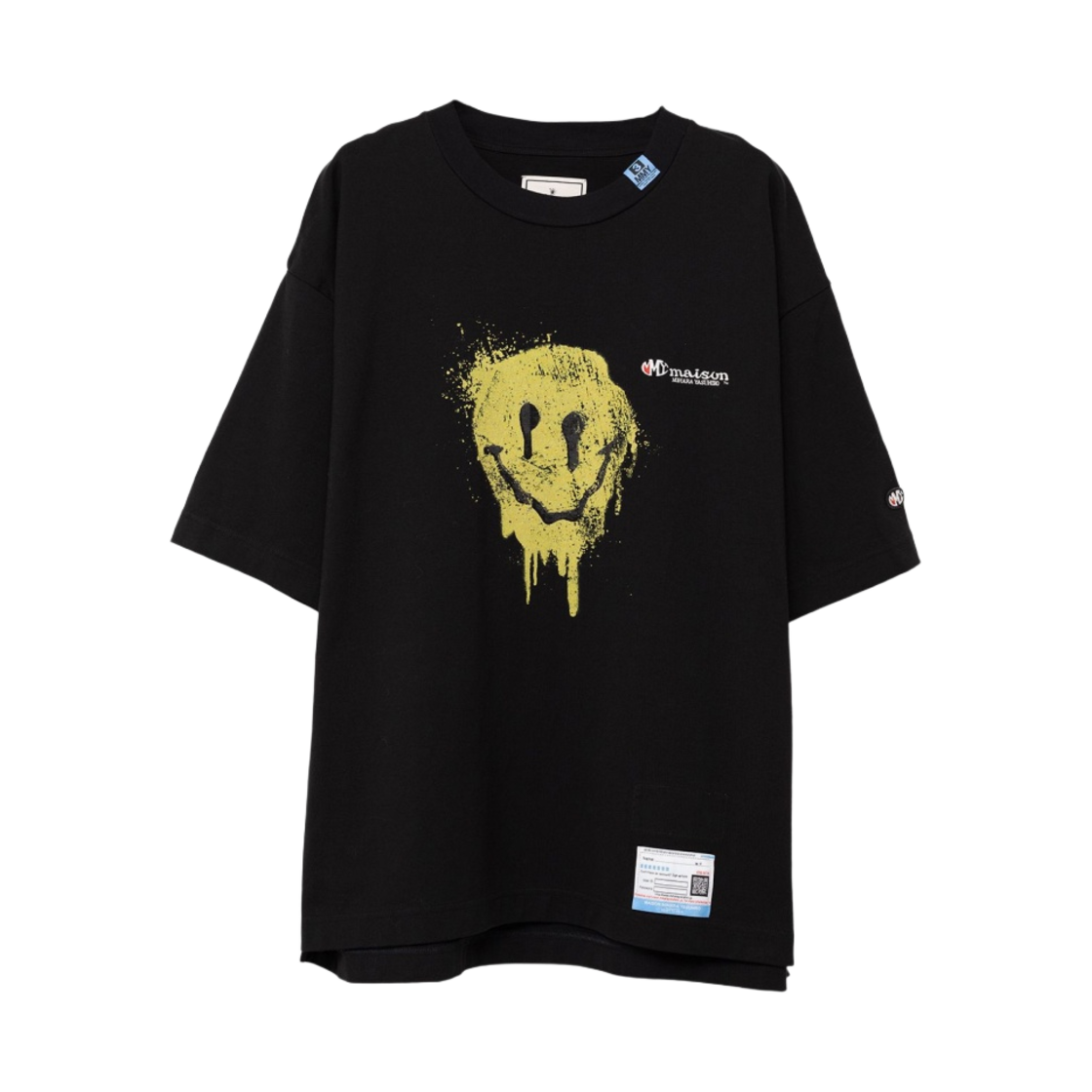 메종 미하라 야스히로 스마일리 페이스 프린티드 티셔츠 블랙