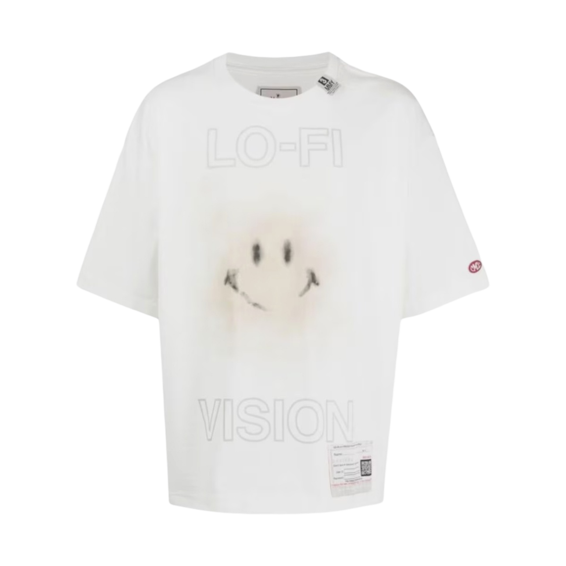 메종 미하라 야스히로 스마일리 페이스 프린티드 티셔츠 화이트